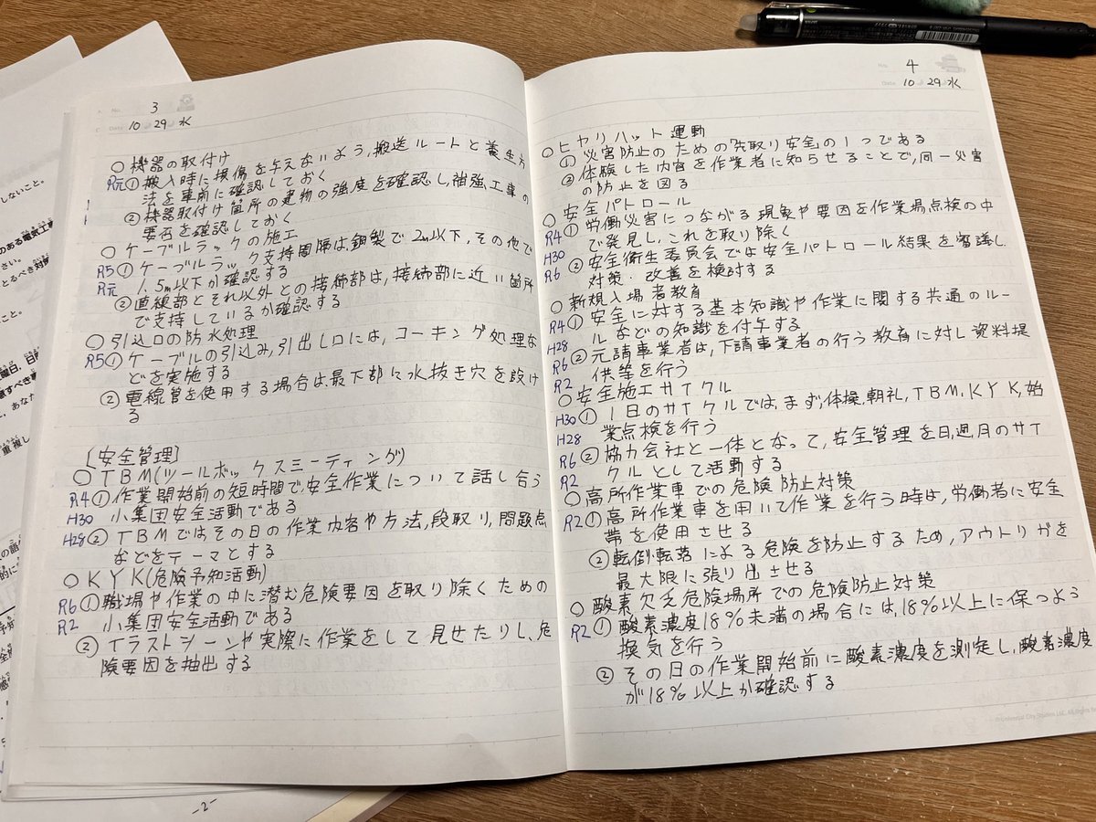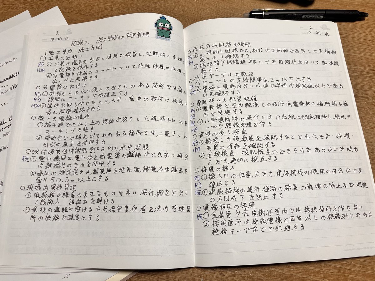 10.29(水)の勉強記録です!✍️ 2級電気工事施工管理技士2次試験の勉強を2時間30分出来ました 上司に見てもらって、あとはこれを覚えるだけ!戦法で行こうと思って、まとめました 頑張って覚えなきゃ…! #勉強垢さんと繋がりたい #勉強垢さんと一緒に頑張りたい #資格勉強 #社会人の勉強垢 pic.x.com/BmM27CVCK8