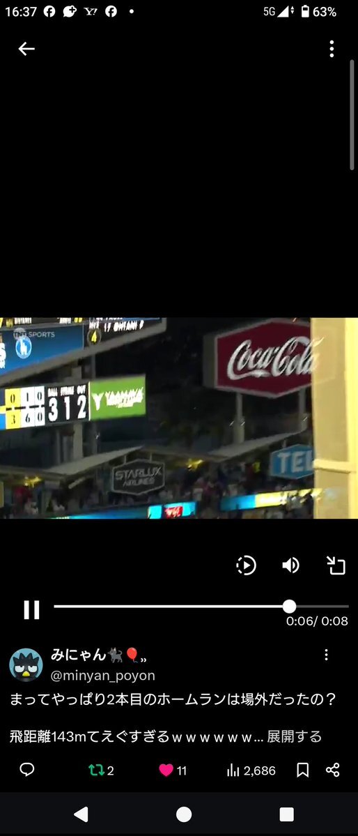 日本標準時18日(土)#ナ・リーグ優勝シリーズ 第4戦 #大谷翔平 選手は二刀流で6回0封10K、3本塁打の大活躍→証言と 動画によると→2本目の特大本塁打は飛距離143m→巨大スクリーンの柱を掠り落下→六角形のSTARLUXの看板の屋根に当たり(貫通?)場外に落下→柱に掠らず屋根に当たらなければ150m超は確実 pic.x.com/H39VjXBITk