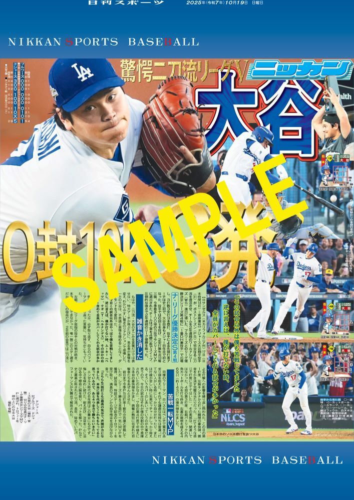 / ⚾#ドジャース #大谷翔平 投手が、 ⚾2安打無失点10奪三振⚾ ⚾3打数3安打3本塁打⚾ 投打の大活躍でチームをWS進出に導きました✨ \ 【商品番号NSD25A19】 10月19日付日刊スポーツを全国コンビニマルチコピー機で販売中🏪 A4光沢紙(ファミマ・ローソンのみ)A3の2種類が選べて300円🔥 #MLB pic.x.com/I8OxJdo2wS