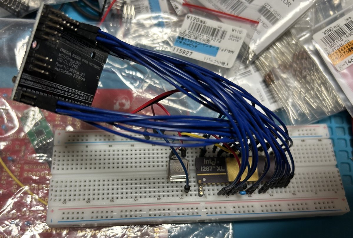 .@4sun5bu さんの記事を参考に、手持ちの287XL(DIPな方)をArduino mega 2560互換機と繋いで、GitHubで公開されてたテスト用のスケッチを書き込んでみたのですが動かず… どうやら初期化後に#BUSYがアサートされっぱなしになっているようで(涙 choisaki.blogspot.com/2024/02/80287x… pic.x.com/aGErybtyz8