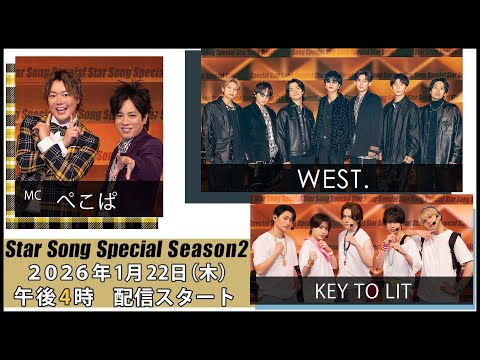 / 『Star Song Special』Season2 🎥第9回Teaser 解禁 🎉 \ 次回の気になる出演者は...💡 🛎こちら...!🛎 MC:ぺこぱ 出演:WEST. ジュニア(KEY TO LIT) #スタソン #StarSongSpecial 🗓開始日:2026年1月22日(木)⏰16:00~ 📺放送局:Prime Video・DMM TV