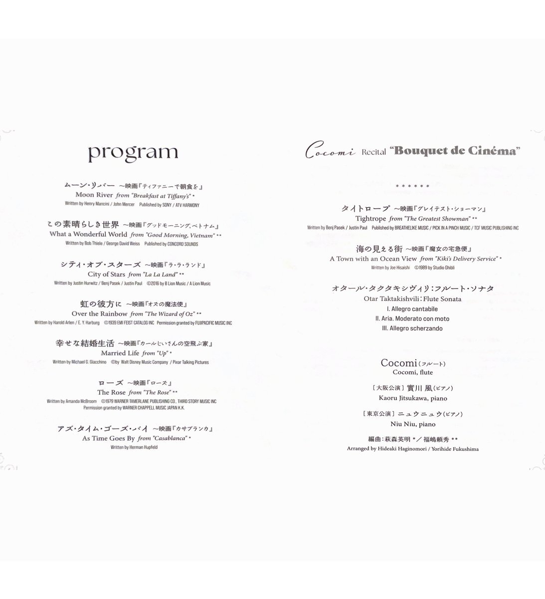今夜はCocomiさんのリサイタルにご招待いただきました♪映画音楽の世界を美しいフルートとピアノの音色で🎹クラシカルなひとときを堪能させていただきました♡私の席の真後ろにしぃちゃん、娘さん、お母さんがいらしてドキドキしました^_^気づかれないようにチラ見くらいで我慢しました😅 pic.x.com/oGktWZ7Pc6