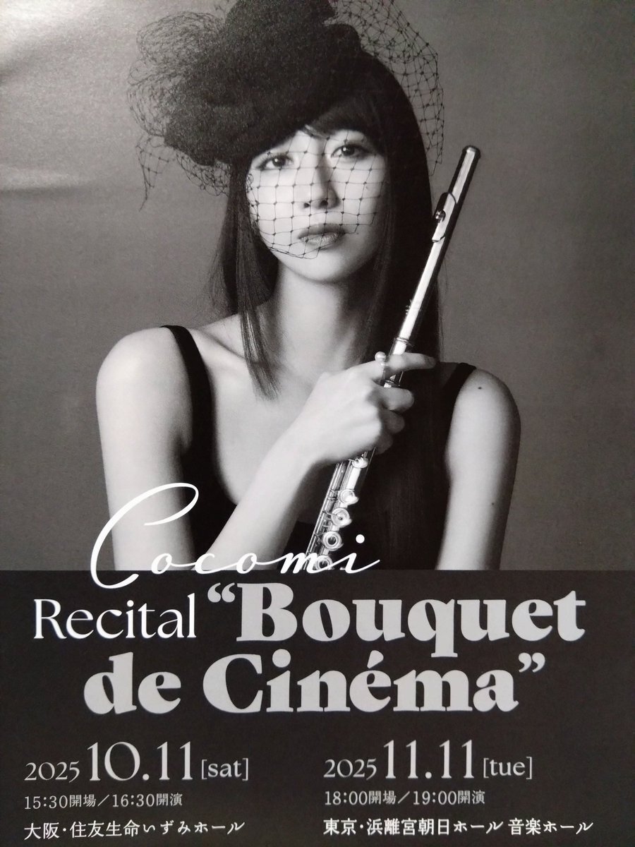 cocomiさん!アルバム『Bouquet de Cine'ma』昨日発売おめでとうございます♡ cocomiさんのフルートの優しい音色をInstaで聴いていたら学生時代の吹奏楽部を懐かしく思いだしました。 アルバムを聴きながら又吹いて見ようかな! 家で早く聴きたいなぁー♡ #cocomi #BouquetdeCinema pic.x.com/BXKw3sqP6x