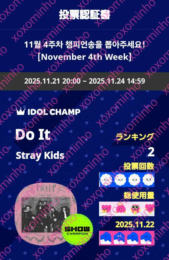 ショーチャン今スキズが2位が耐えられなくとりあえず結構貯まってたので様子見ながら投票してみた😁 #StrayKids #스트레이키즈 #DO_IT #SKZ_IT_TAPE #Do_It #신선놀음 #DIVINE #StrayKidsComeback #YouMakeStrayKidsStay pic.x.com/16SFcFHwtJ