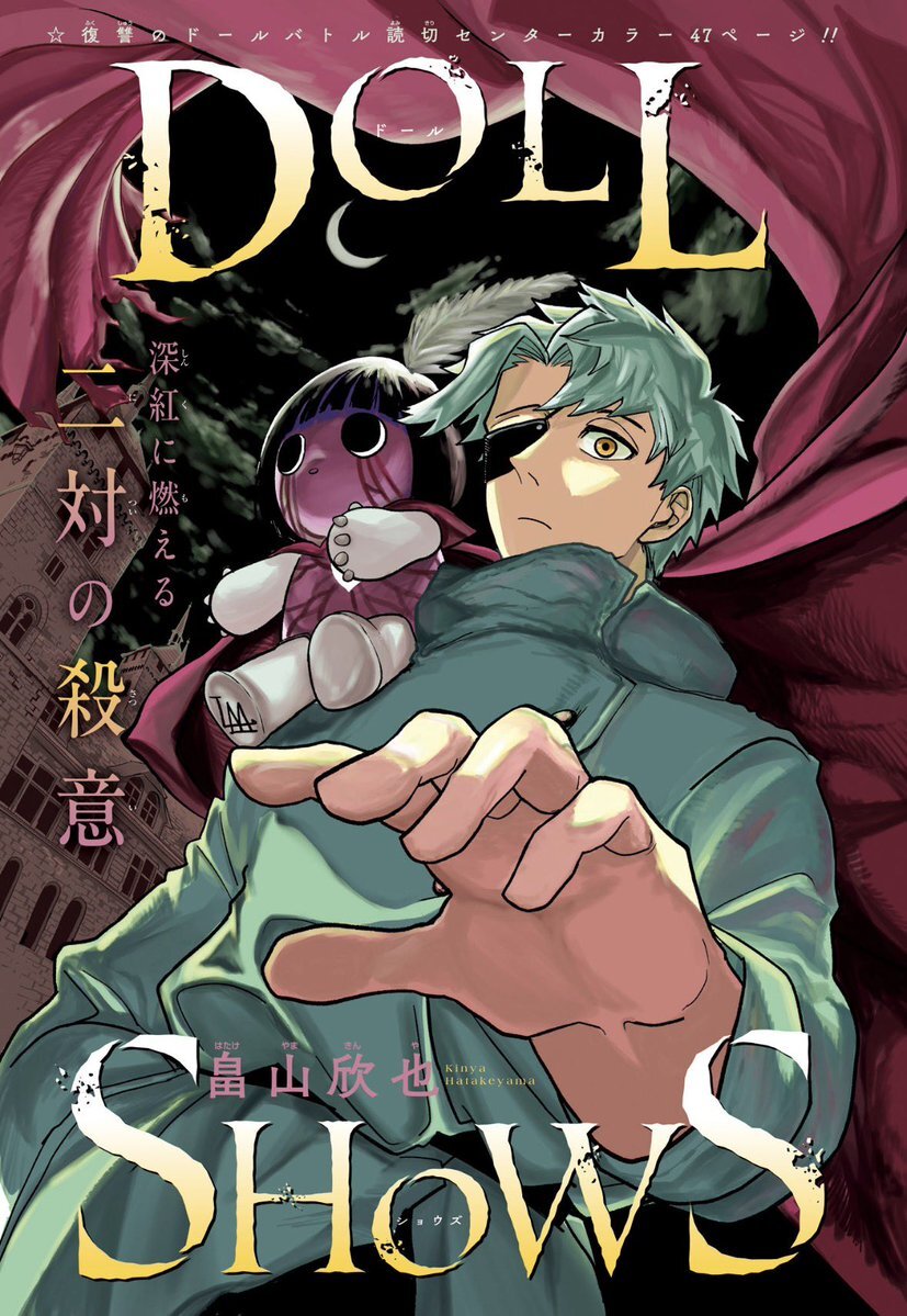 DOLL SHOWS。おもしれー!!!!!!!! 世界設定も、キャラ設定も、バトルの具合も、全部おもろい。読み切りでここまで伝えてくれることあるんだ。 呪いの人形の話で、人形師と人形使いの物語。目的と、そこから生まれる物語が見事にわかりやすくて、しかもおもろそうなバトルものになりそう。