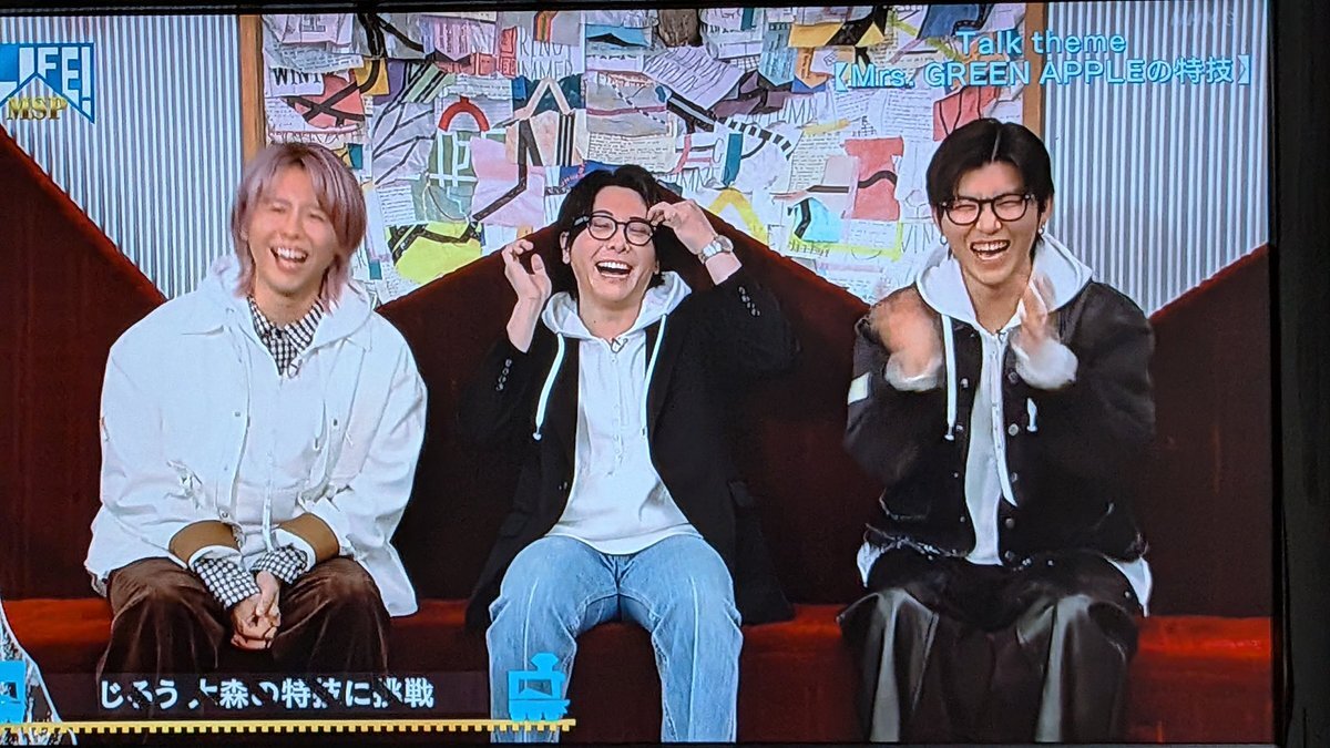 LIFE!マーベラスSP コントにトークに盛りだくさんで最高におもしろかったです! 楽しい時間をありがとうございました🍏✨ #NHK_LIFE #MrsGREENAPPLE x.com/aoringohuzin/s…