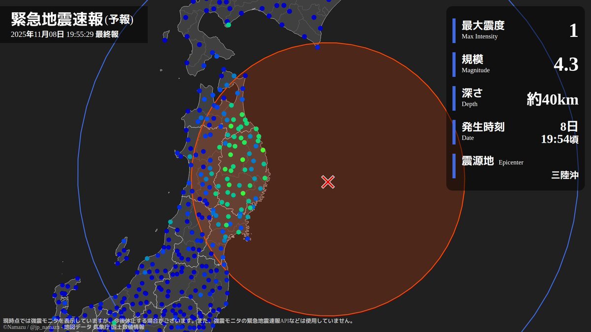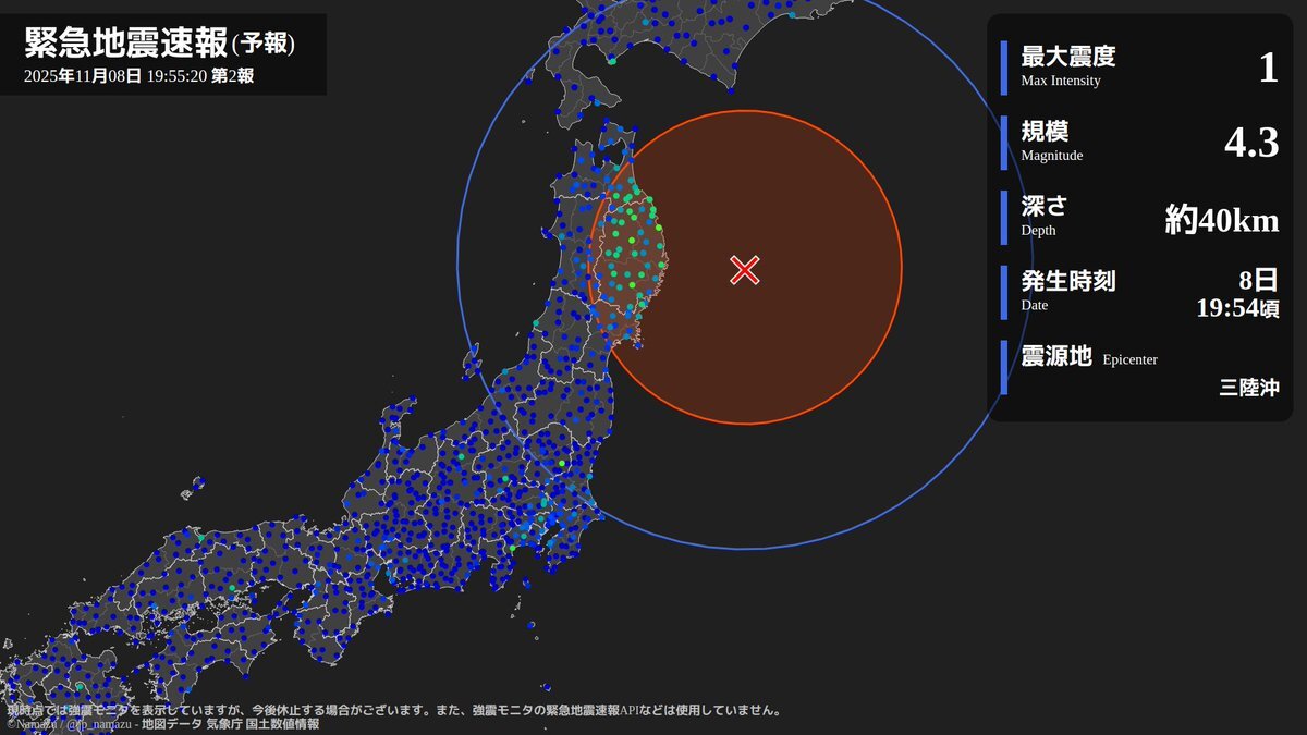 - 地震速報