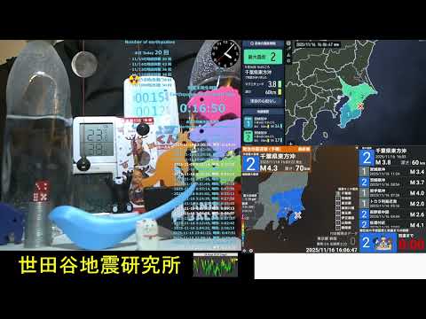 2025/11/16 16:04:12 千葉県東方沖で地震 ・最大震度2 ・マグニチュード4.3 ・深さ70km Earthquake off the east coast of Chiba Prefecture Japan M4.3 ★発生時の記録映像は↓こちらより youtu.be/JbnIE4cnqvs #地震 #緊急地震速報 #earthquake