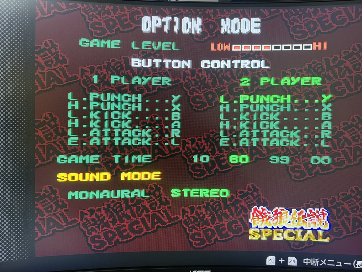 Nintendo Classicsに配信された餓狼SP。 音がスカスカしてるなーと思ったらDolby表記が消えてた。 オプションにもsurroundが無い。 やはり実機が1番ね。 タカラロゴの隠しコマンドが失敗したら巻き戻せるのは便利。 Aタメバグ、タメコマンドはニュートラ挟むのはそのままでした。 pic.x.com/8i7c5Pv9Sj