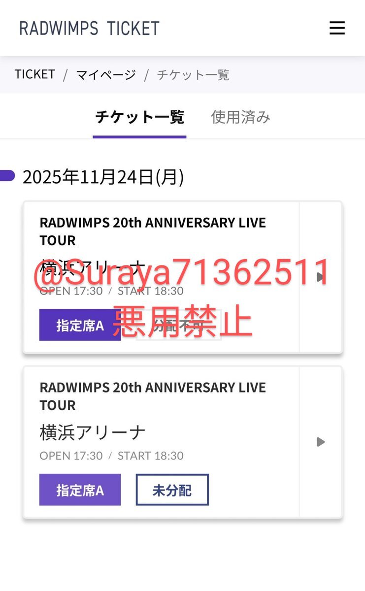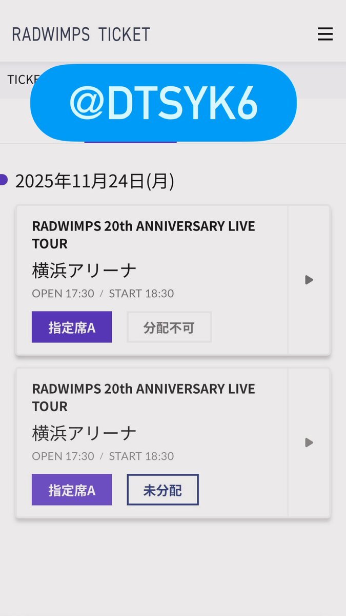 RADWIMPS 20th ANNIVERSARY LIVE TOUR RADWIMPS × BUMP OF CHICKEN Vaundy YOASOBI チケット 【譲渡】横浜アリーナ ・11/24 【求】定価+手数料 各日2枚ずつの譲渡先を探しています🙇♀️💯💕9865:xx ….. #RADWIMPS20th_TOUR #RADWIMPS #BUMPOFCHICKEN