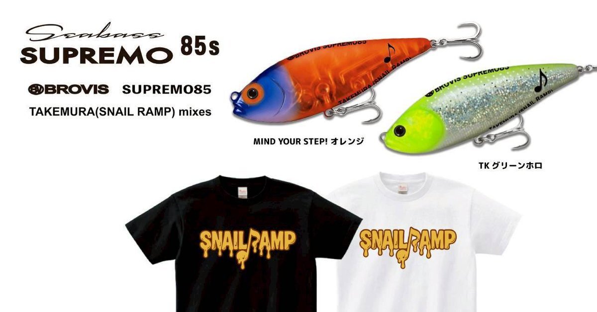 【SNAIL RAMPアイテム情報】 TAKEMURAがシーバスアングラーとして釣り業界に進出!オリジナルカラーのルアー・スプレモをリリース。 このリリースを記念し、「SNAIL RAMP Tシャツ&スプレモ85S 限定セット」をBROVISから発売します。 詳細:note.com/snailramp1995/… pic.x.com/Ci2s2acL94