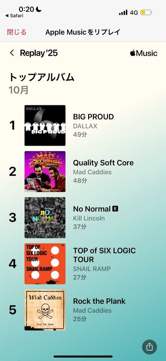 10月はこんな感じ 圧倒的にハルカミライとSNAIL RAMP率が凄かったわ、ライブ参戦とスネイル復活が 誠に熱かったんだよね、うん ALTに何分か何回か書いているんで 観てください、とりあえずね ハルカミライSNAIL RAMPのこの2組が 熱い、ロック界隈が熱くて 情報が追いつかんわ、11月もヨロシク。 pic.x.com/0OtFo3LfDa