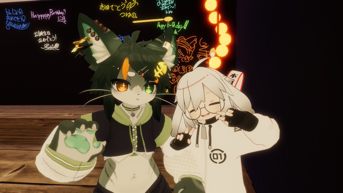 昨日のVRC ダンスへ参加してから滑り込みで夜宙さんの誕生日インスタンスへ その後別ゲーをやってからぶいちゃに戻ろうとしたらSteam鯖落ちでSteamVRが起動出来なかったのであきらめて就寝 ①パン🥖(빵)の次は野菜🥬(야채)がくる? ②令和! ③集合写真 ④誕生日おめでとう〜!🎉 pic.x.com/MjowPqTHeI