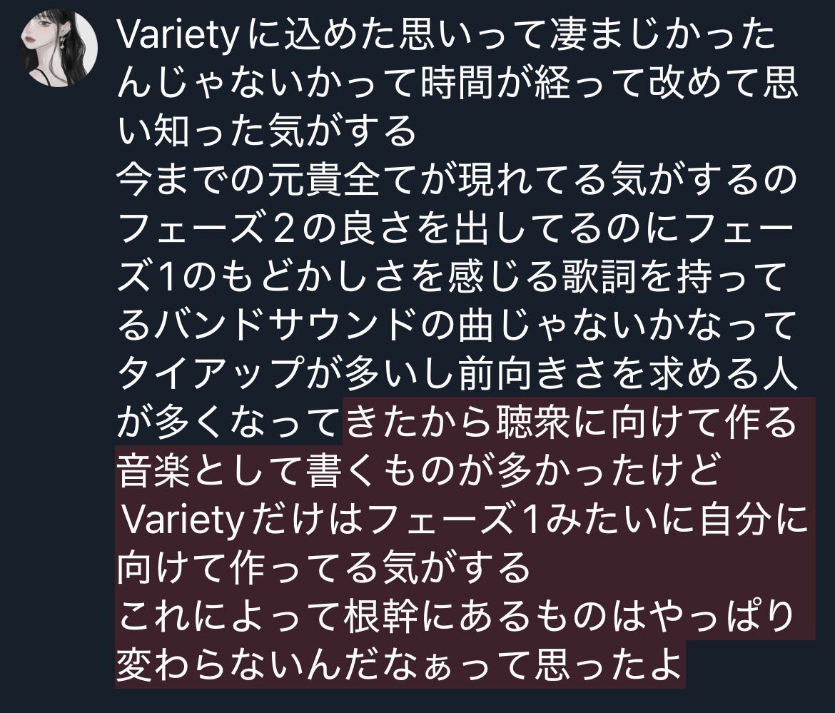 the originの情報が流れ始めてからずっと脳内でvarietyが鳴ってる 凄まじいエネルギーが音に詰まってる。 他の曲が軽いわけではないけど、私の特別はattitudeであり、天国であり、varietyなんだよ。