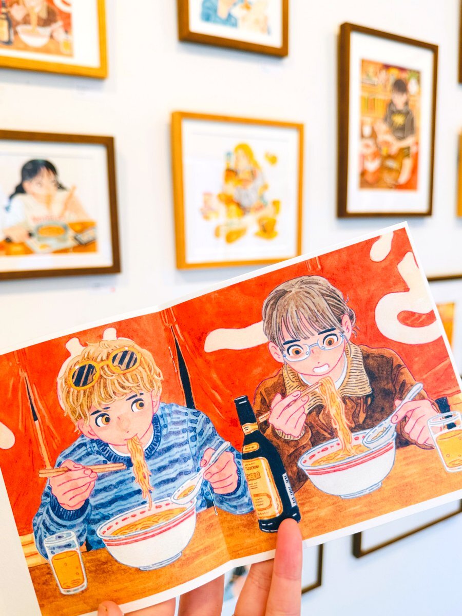 satsuki 個展「VARIETY」あと3日となりました!焼きそば、うどん、カップラーメンなど、一人暮らしの食生活を明るくしてくれる麺のバラエティを表現。色鉛筆と透明水彩を用い、この季節にぴったりの温かいシーンを描いています。展示作品や新作ZINEグッズなど販売中〜本日もぜひお立ち寄りください🍜 pic.x.com/T34c73tXbe