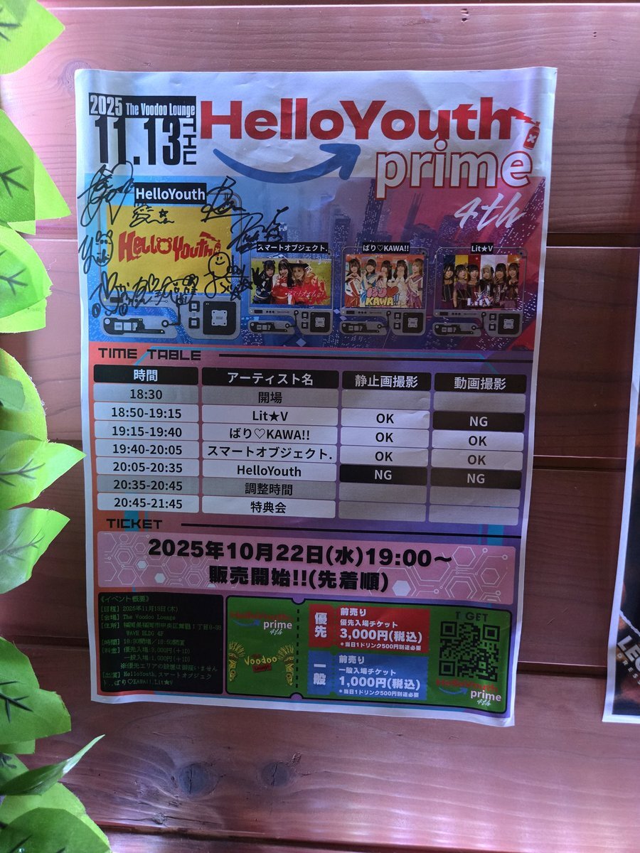 HelloYouth Prime 4th Voodoo Lounge に行ってきました!Lit☆v.ばり🤍KAWA!! スマートオブジェクト.HelloYouthの4組で熱いステージでしたハロユスのセトリ最高によかったです😊特典会終了後にオタクの雑談会6人でおっちゃんのどうでもいい話で盛り上がりました😂 #HelloYouth大島向葵 #あおちゃんず pic.x.com/beigKMFuUj