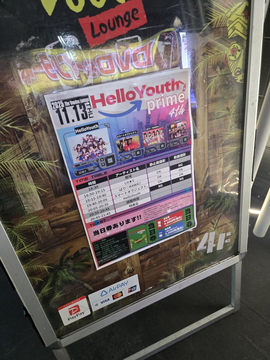 #今日の現場 は #HelloYouth prime 4th@The Voodoo Lounge ってとこで、2度目の #ハロユス 🙌 3rdはツヨツヨなユニットが多かったけど、今回はポップ寄りでワタクシ好み👍🏻 ̖́-︎ 相変わらずのリズム取りで、勝手に楽しみました😊 pic.x.com/CP3jWG9BkB