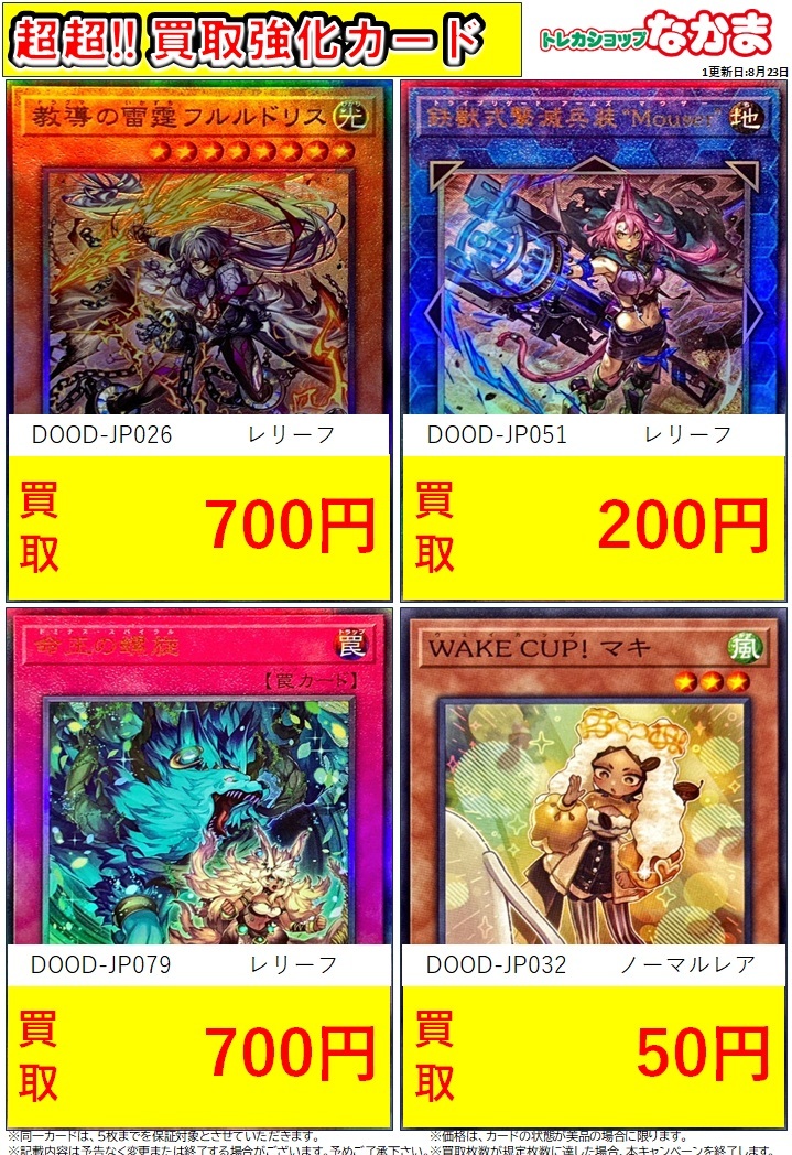 #遊戯王 買取情報】 『DOOM OF DIMENSIONS』買取表 教導の雷霆フルルドリスUL 700円買取 鉄獣式撃滅兵装“Mouser”UL 200円買取 命王の螺旋UL       700円買取 WAKE CUP! マキNR    50円買取 その他汎用EXも買取募集中です! 皆様のご来店を心よりお待ちしています🙇‍♂️ pic.x.com/A8gCgOSg1Y