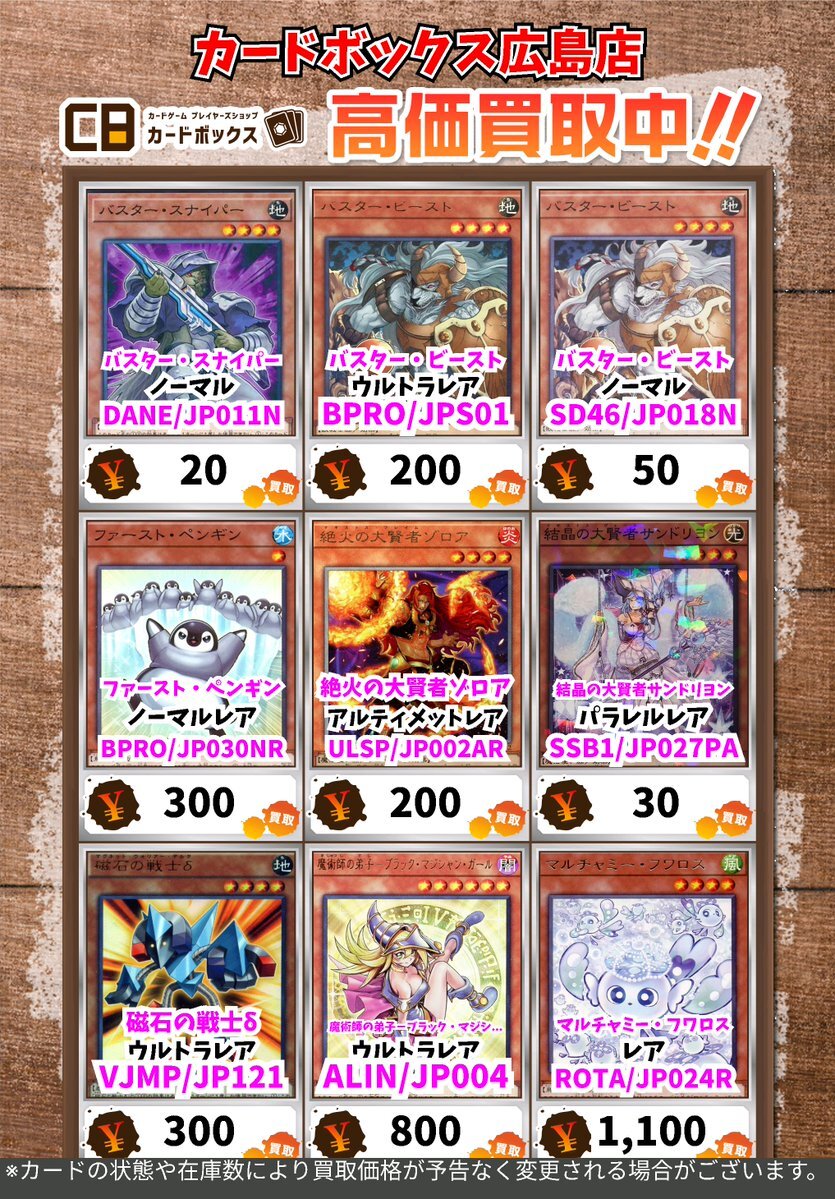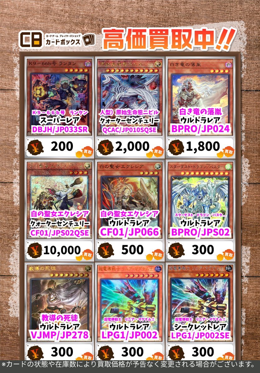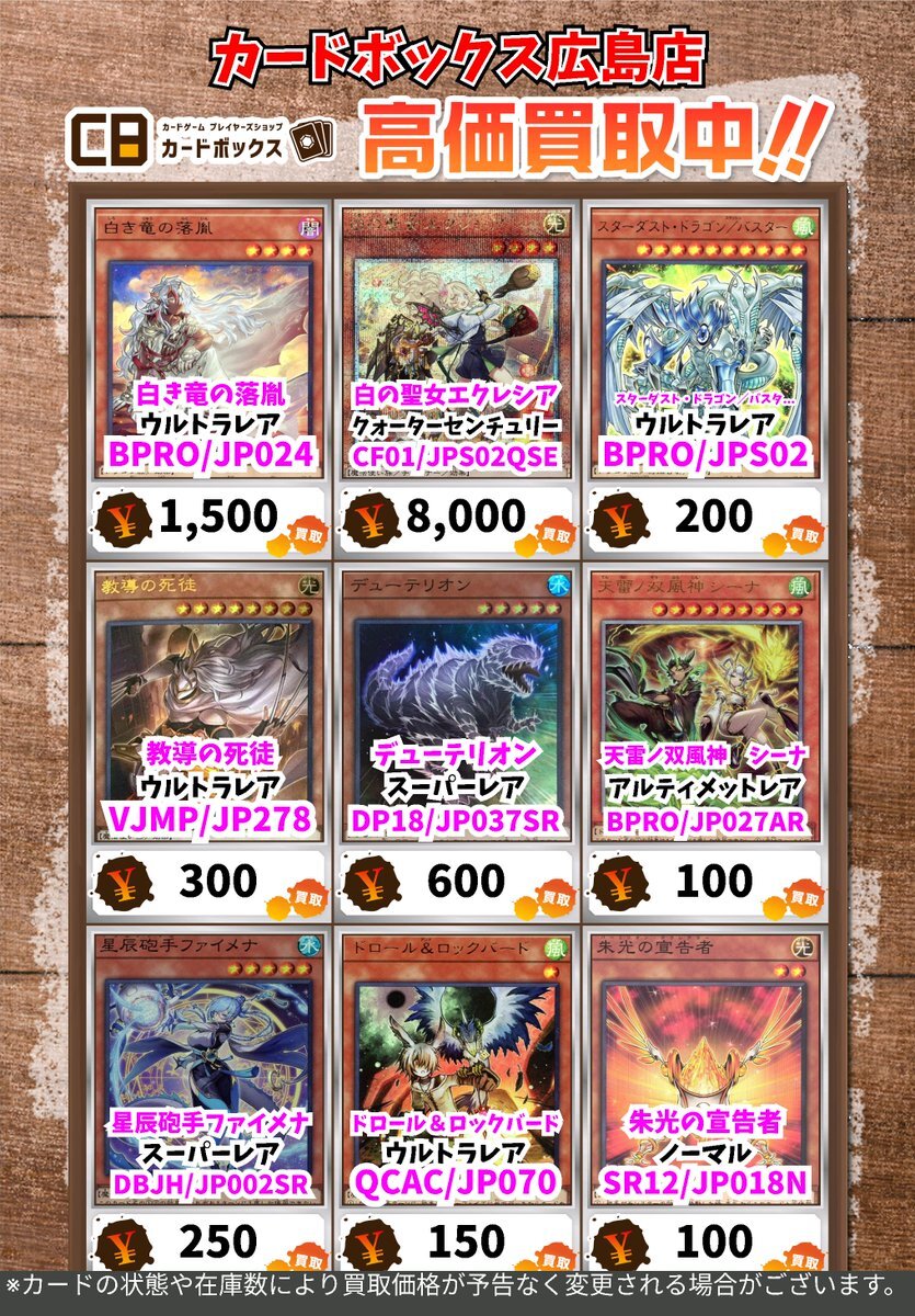 🔥🔥🔥遊戯王買取情報🔥🔥🔥 クリムゾン・ブレーダー/バスター ウルトラレア 50  白き竜の落胤 ウルトラレア 1600  WAKE CUP! アル ノーマルレア 50  バスター・ビースト ウルトラレア 200  スターダスト・ドラゴン/バスター ウルトラレア 300  #遊戯王 #CB広島買取 pic.x.com/yzhHIob7Je