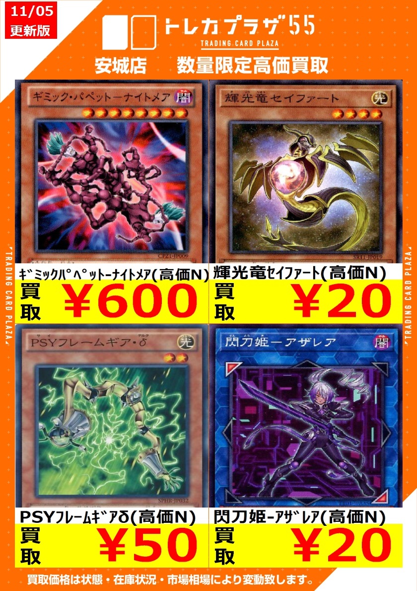 【遊戯王買取情報】 高価ノーマルの買取です! ギミックパペット-ナイトメア(高価N) ¥600 斎キ狭依姫(高価N) ¥100 WAKE CUP! マキ(高価N) ¥50 など #トレプラ安城 #遊戯王 pic.x.com/RgUDTc0Dy8