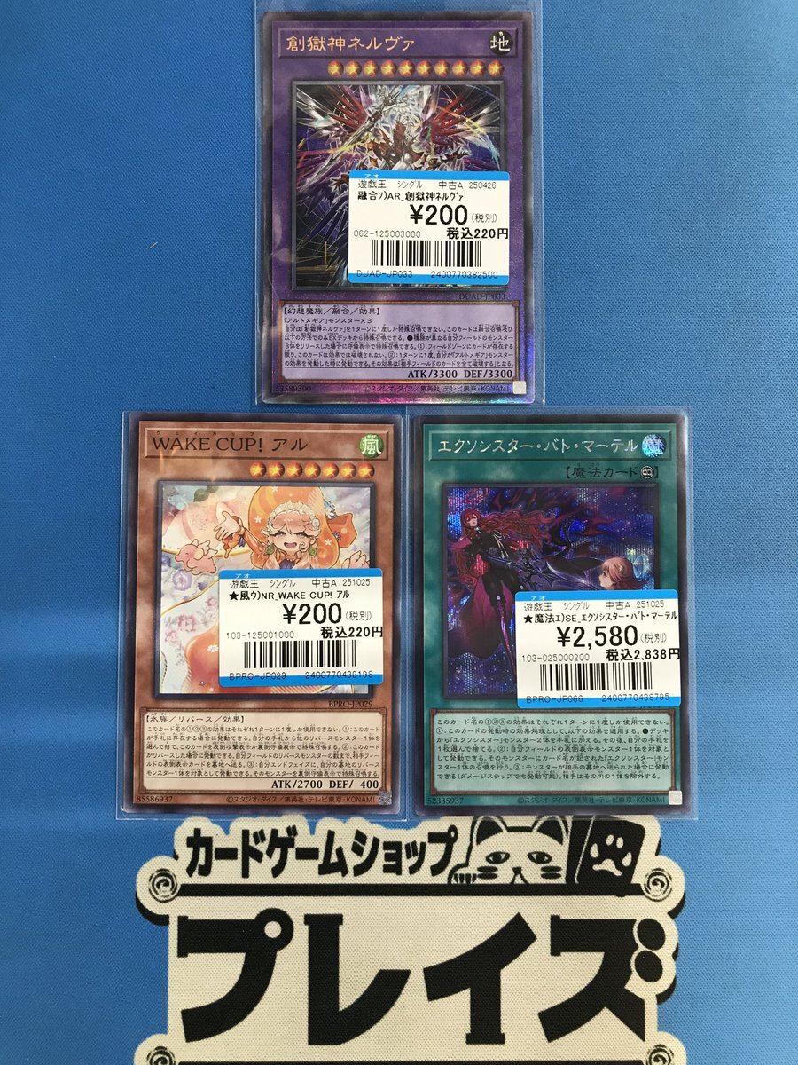 【買取情報】 #遊戯王 AR『創獄神ネルヴァ』 NR『WAKE CUP! アル』 SE『エクソシスター・バト・マーテル』 買い取りさせていただきました☺ お求めのお客様はぜひ #プレイズイオンタウン刈谷店 までお越しくださいませ💨 pic.x.com/lUiVPnXuZa