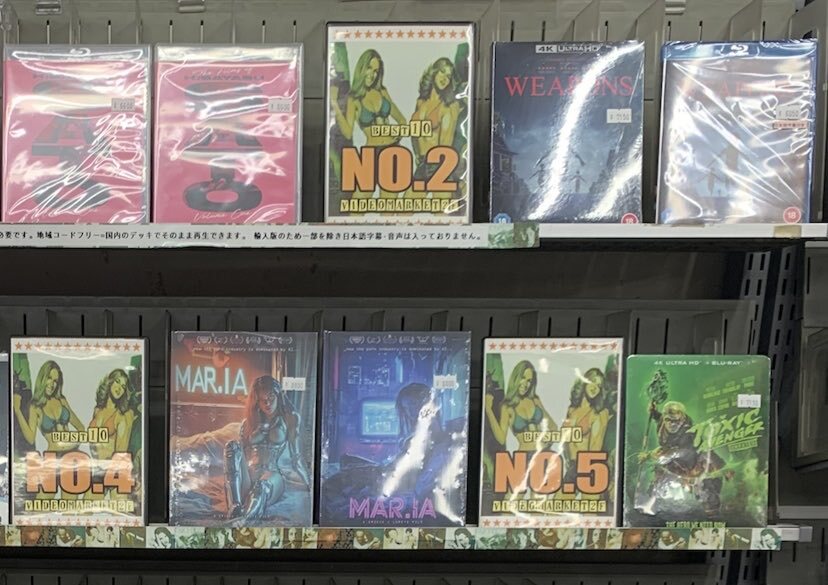 ビデマさんに 予約品を取りに行ったら… 欲しいタイトルあり過ぎて困りました…😭 いつもありがとうございます😊🙇♂️ 2位の話題の「WEAPONS ウェポンズ」 は日本語字幕入り! 4位の「MAR.IA」は3種ジャケ違いあり ミーガン的な映画? 東京国際映画祭で話題の 「MISHIMA」もあり pic.x.com/AIIqyxx5cz