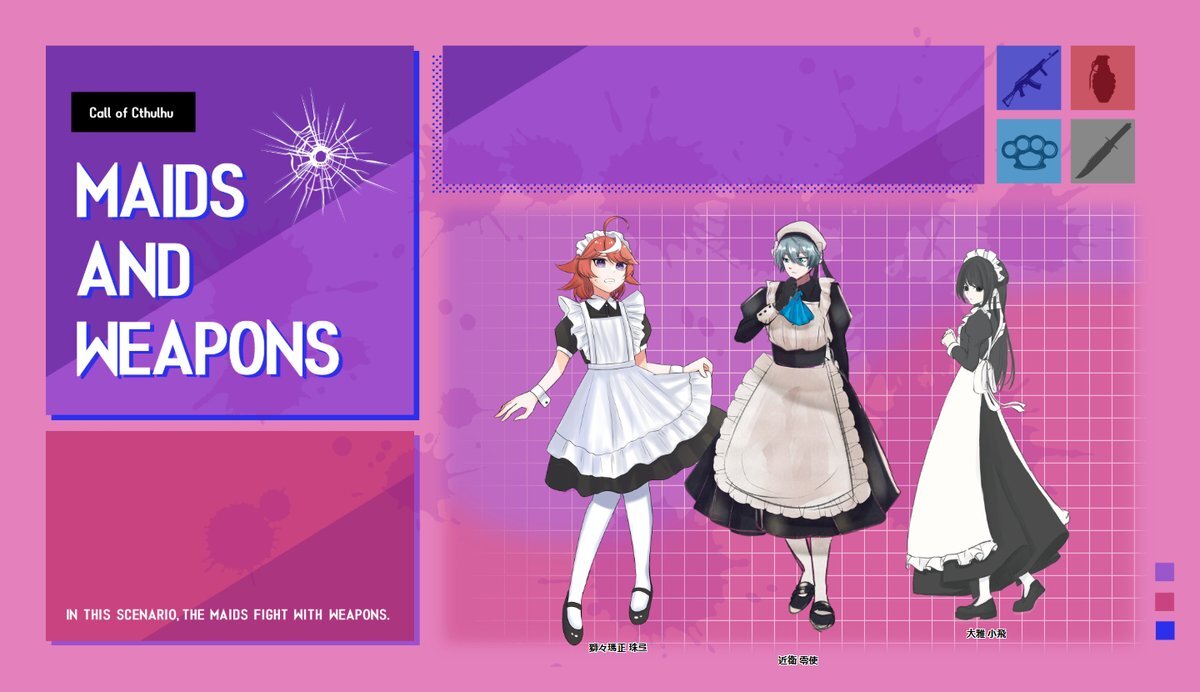 「MAIDS AND WEAPONS」ではこれが見たかったんだよ……ができてKPはニコニコになりました。なんか気分屋すぎる出目の人もいましたがなんとかなって良かった……となりましたみんなえらいよ……KP得だった……めどぽんはいいぞ!!KPにお付き合いいただきありがとうございました!
