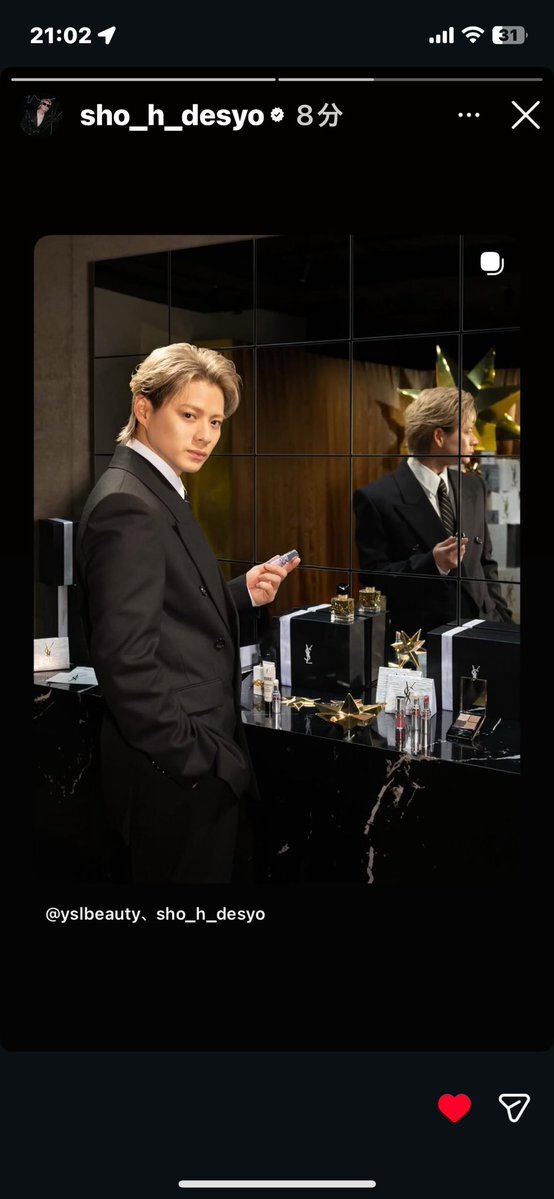 #平野紫耀_Instagramストーリー 紫耀くん❤️ 今日は一日中YSLの美しい紫耀くんに魅了されっぱなし😍自分への🎁も何買おうか考え中 #YSLBeauty #平野紫耀 instagram.com/stories/sho_h_…