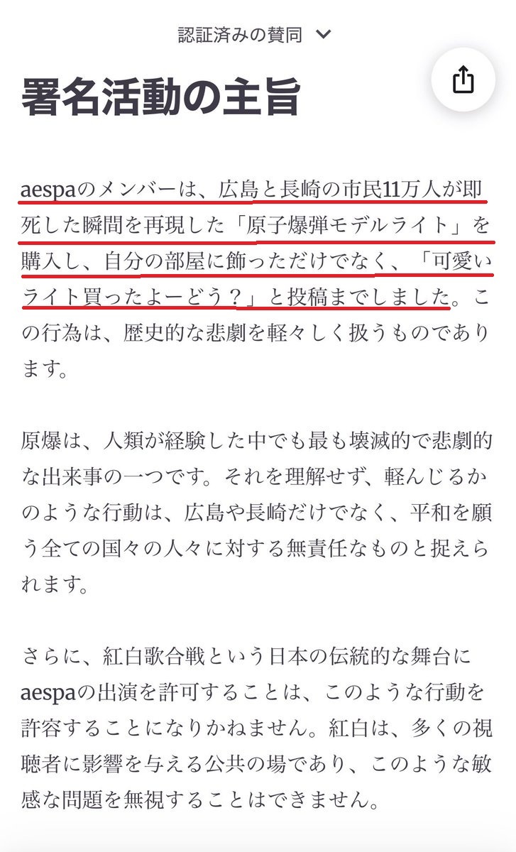 aespaの紅白出場停止を求めます。 署名3万人超 本当に『反日教育』を受けた結果なんかね? なんでもかんでもそう言えば 誰かがなんとかしてくれるとか思ってへんやろうな? pic.x.com/etWVf0aYEc x.com/chuta_blues/st…