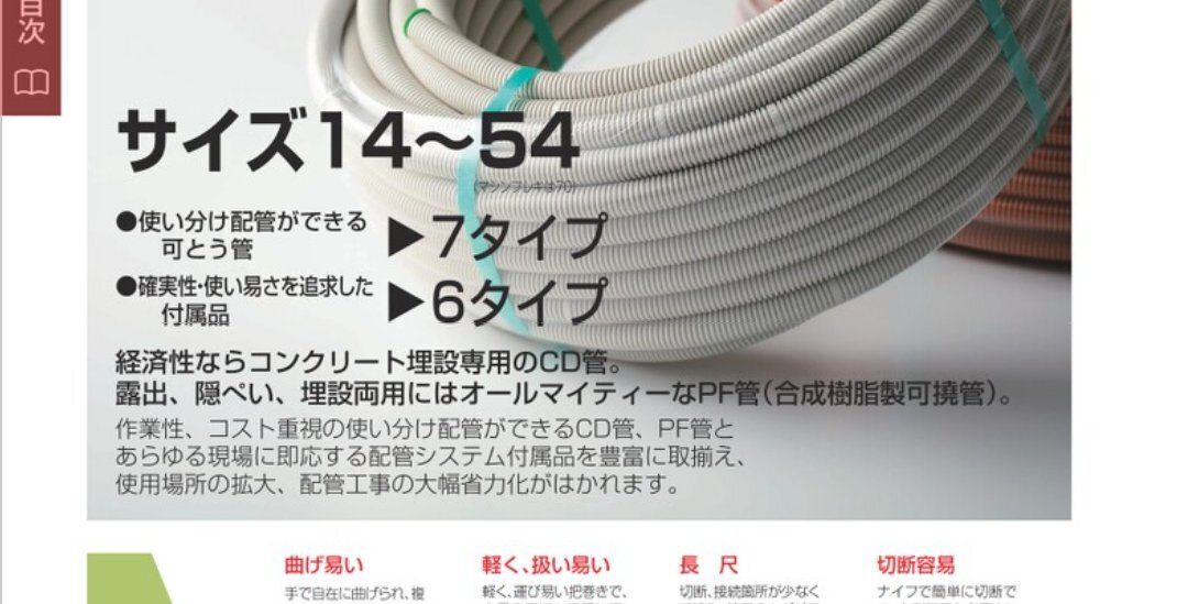 返信先:@spankysf26PF管の方がCD管よりも倍半分高いからと思います CD管の方が固く施行しづらい反面、潰れにくいので、特にLANケーブルとか光ケーブルをあと施行したい場合は、CD管が良いけれども… 一般仕様書や公共系の工事だとPF管指定だったりするので、いつもの癖でCD管使用しやり変えで痛い目を見てるのでは…