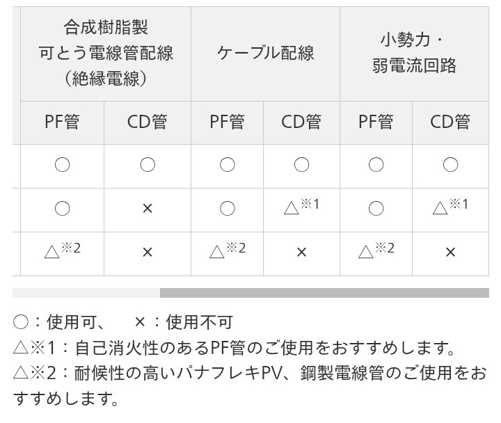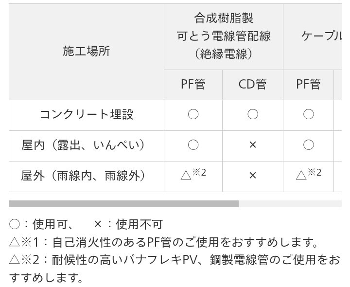 カタログでコンクリート埋設専用となっていても、それは合成樹脂管工事(絶縁電線 IV使用)の場合であって、ケーブル使用なら、ケーブル工事→保護管として良いという事と思うが、ここら辺りの解釈の違いでCD管警察が発生しそうだな🙄 pic.x.com/FoClN4vryd x.com/spankysf26/sta…