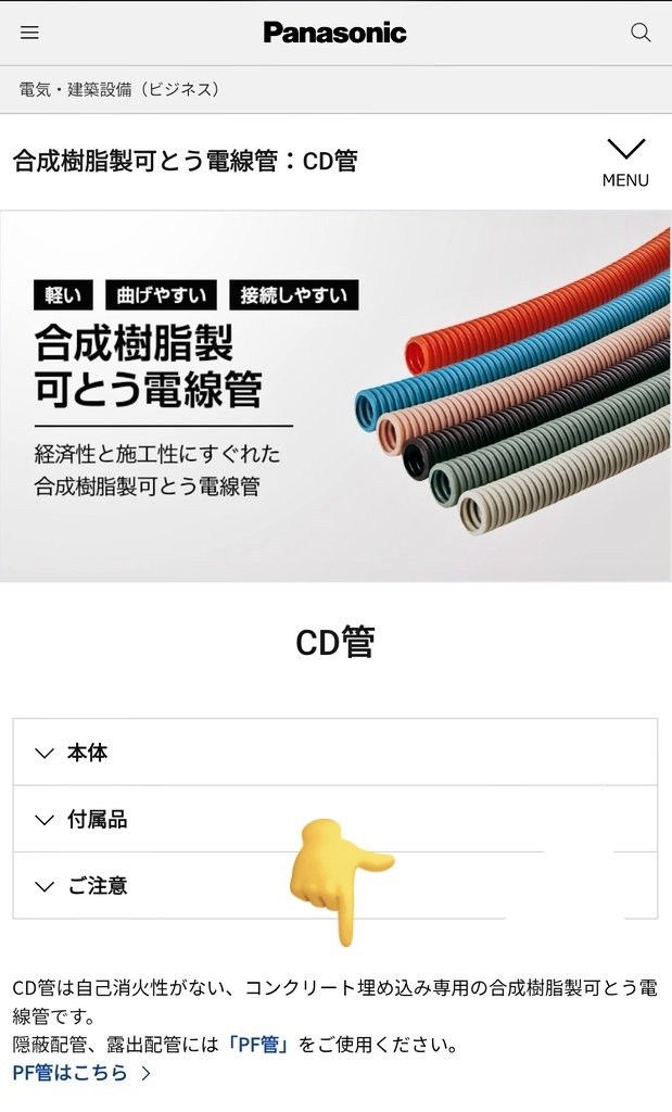 返信先:@spankysf26ハウスメーカーの人に聞いたら 技術基準の解釈ではPF管ってなってるけど罰則規定がないから 木造配線でも(安いから)CD管でやってしまう言ってました 気になる方は施工前にPF管指定してくださいと…