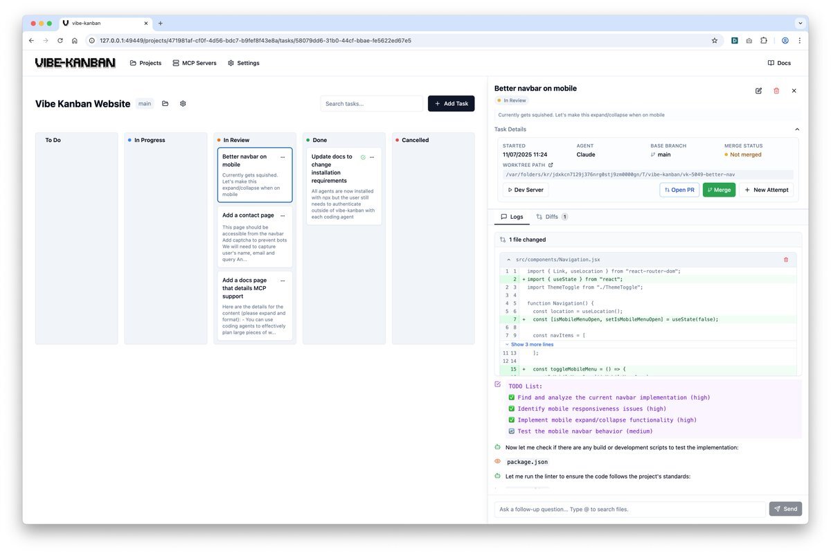 バイブコーディングの生産性を10倍上げる『Vibe Kanban』が画期的。 ✅Claude Code, Gemini CLI, Codexの複数実行・管理 ✅迅速なレビューと開発サーバー起動 ✅タスクのステータス追跡 ✅MCP設定の一元管理 とUI的にも使いやすい。オープンソースで無料で使えます。 ↓詳細 pic.x.com/Hyxj7EYZTN