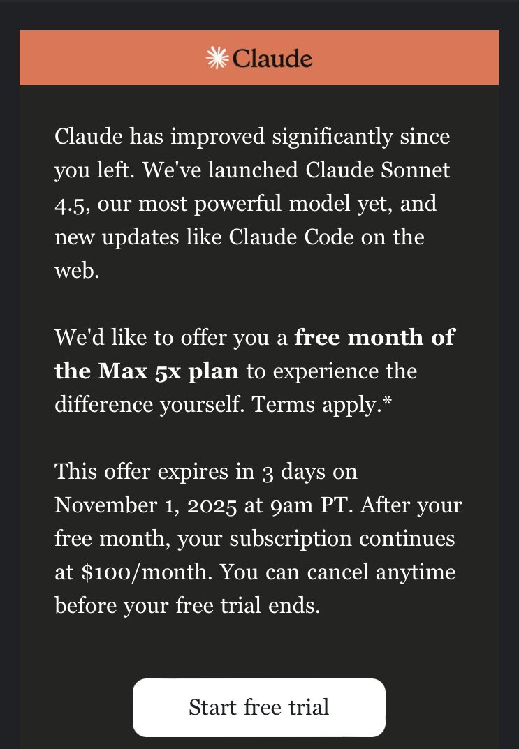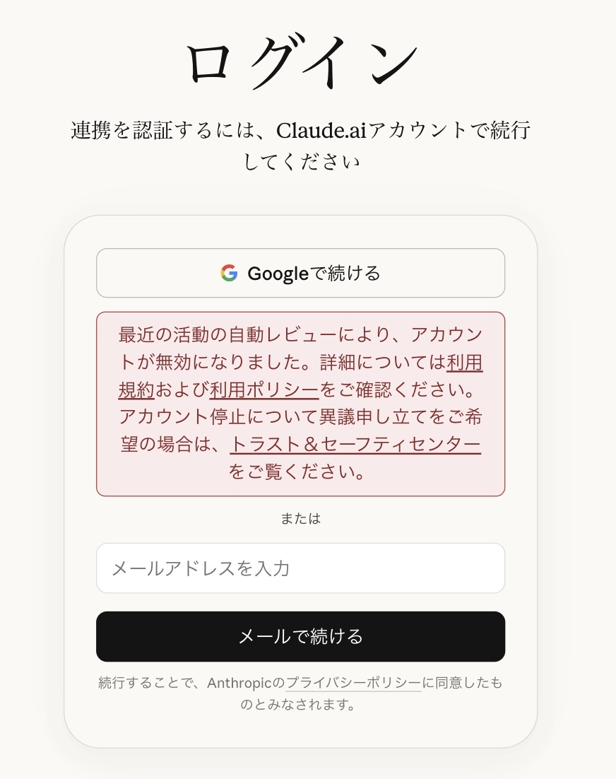 Claudeの垢BANでClaude Codeが使えなくなった。 テストコード書かせてただけだけだから誤BANだと思ってるけど、異議申し立てが届くのかどうか。 てか、Anthropic社からMaxプラン無料でいいから戻ってきてってメールきたから使ってたのに半月でBANするなよ! @AnthropicAI @claudeai @_catwu pic.x.com/jNrCxi8b0Y