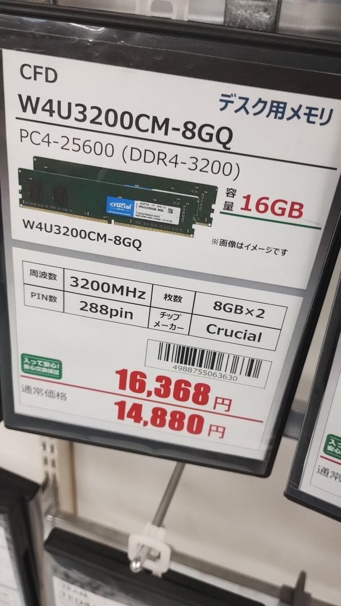 DDR4-32008GB×2枚、欲しいよって人いますか? pic.x.com/KEsrajbb4W