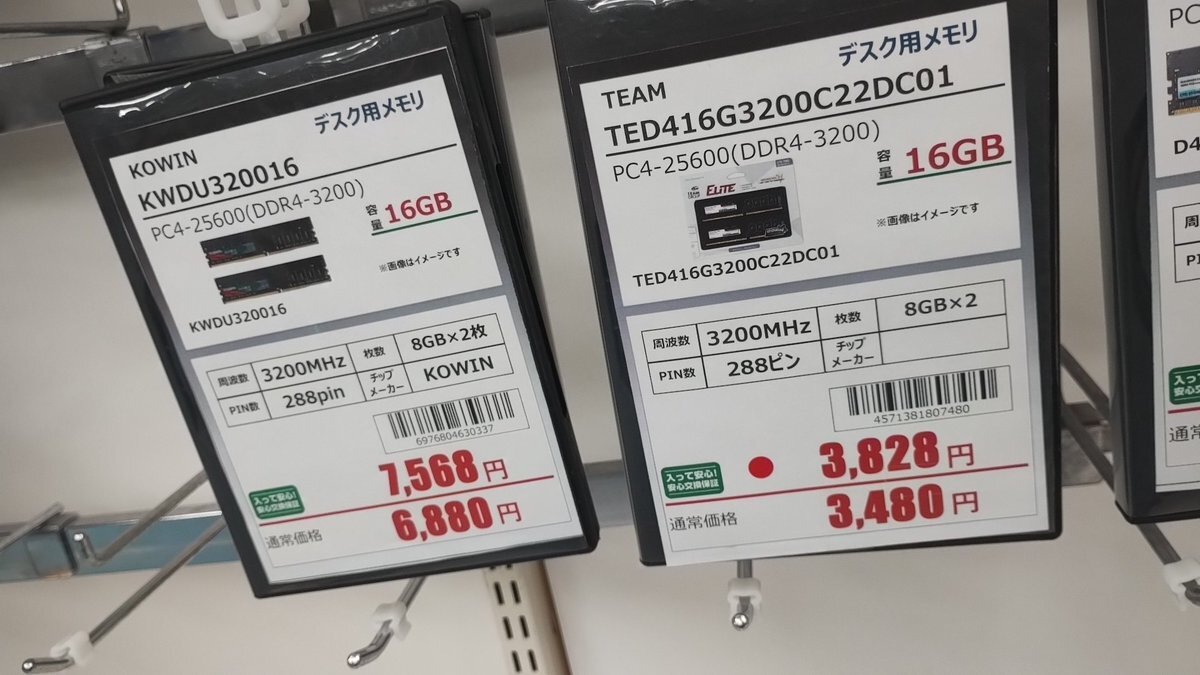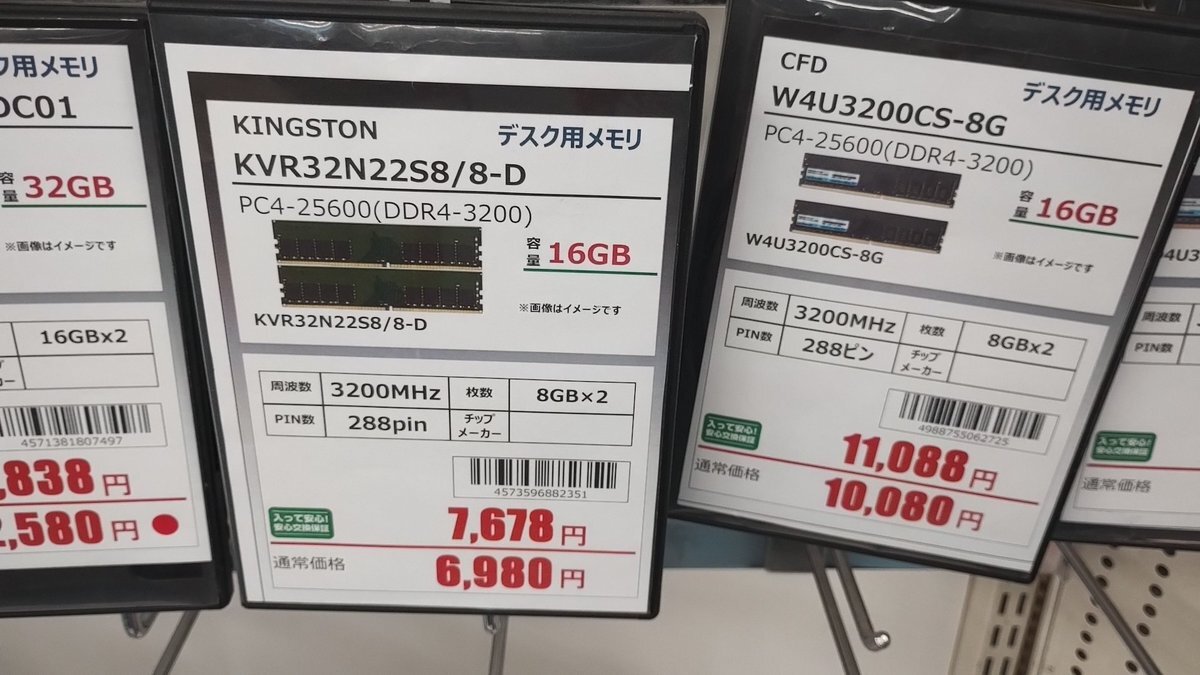 DDR4-3200 8GB2枚、仕入れ時期によって値段差すごくてウサ🐰 3480円は今となっては最安値の半額近い(´^ω^) pic.x.com/A50r1hzXcJ