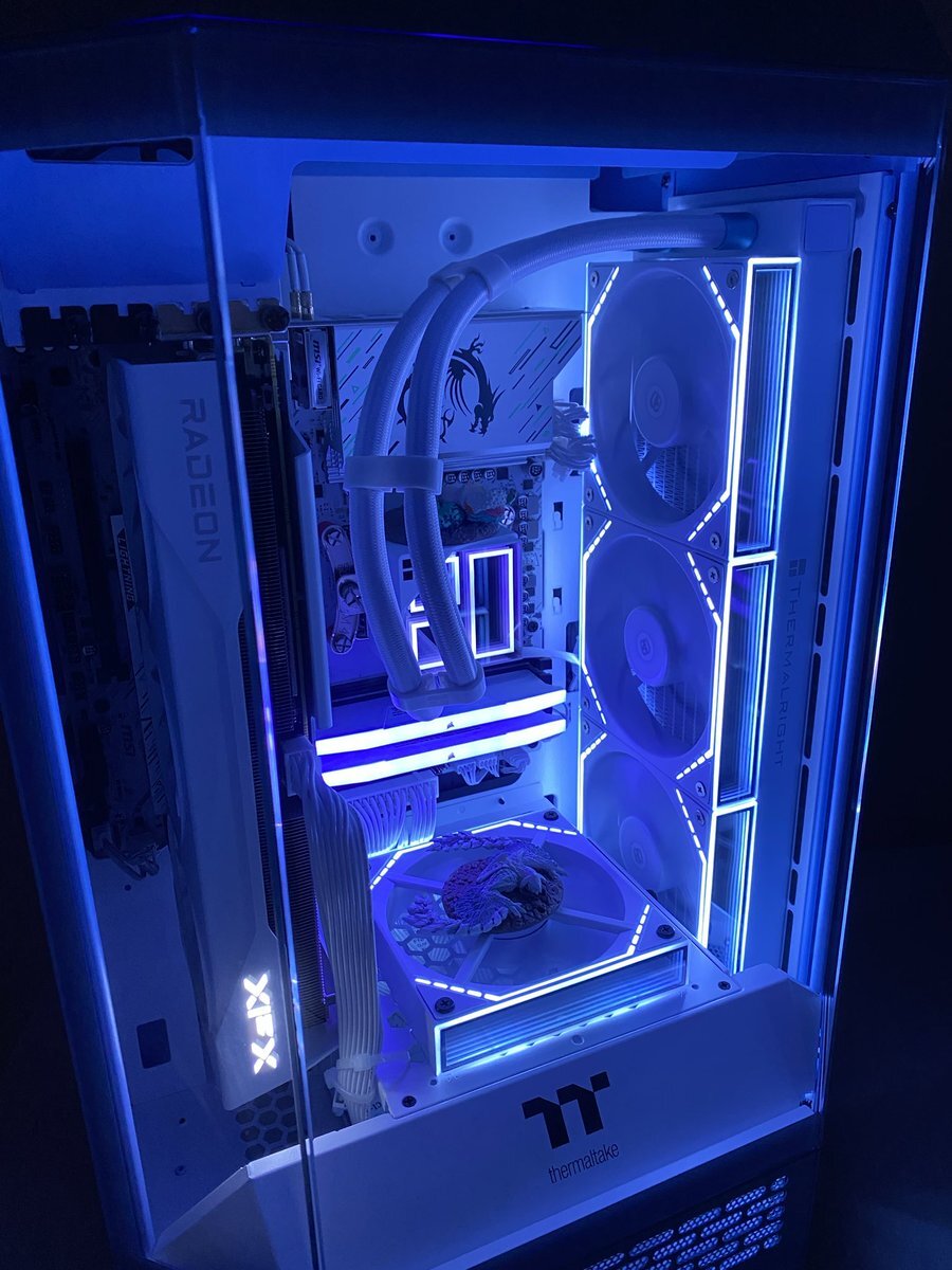 この前作ったPCのスペック紹介✨ パーツは基本ホワイトで揃えました(*´꒳`*) PCケース:Thermaltake The Tower 300 Hydrangea Blue CPU:AMD Ryzen 9 7900X GPU:XFX Swift AMD Radeon RX 9060XT 16G メモリ:CORSAIR DDR5-5200MHz VENGEANCE RGB 64GB 電源ユニット:Thermaltake TOUGHPOWER GT 850W pic.x.com/oeoth7tJih x.com/thermaltakej/s…