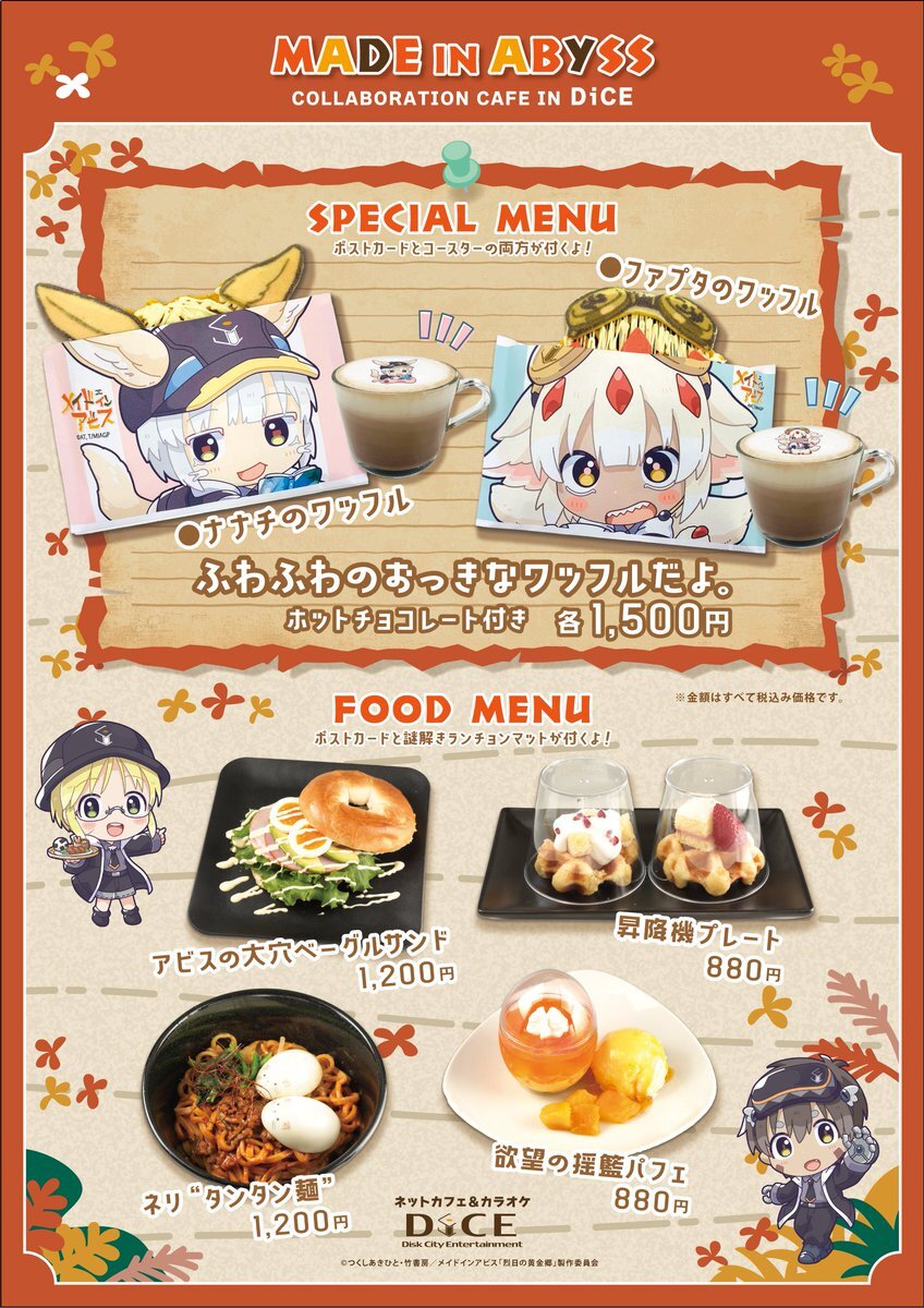 ◢◤ アニメ『 #メイドインアビス』×DiCE コラボカフェ開催決定!!🐾 ˎˊ˗ んなぁ〜「#ふわふわのワッフルだよ」 コラボ限定メニューが登場! ◥◣ 🗓️2025年9月19日(金)~10月31日(金) 📍池袋・大阪・札幌・仙台・大宮・自由が丘(東京) 詳細はこちら🔽 bit.ly/miabyssxDiCEpr #miabyss