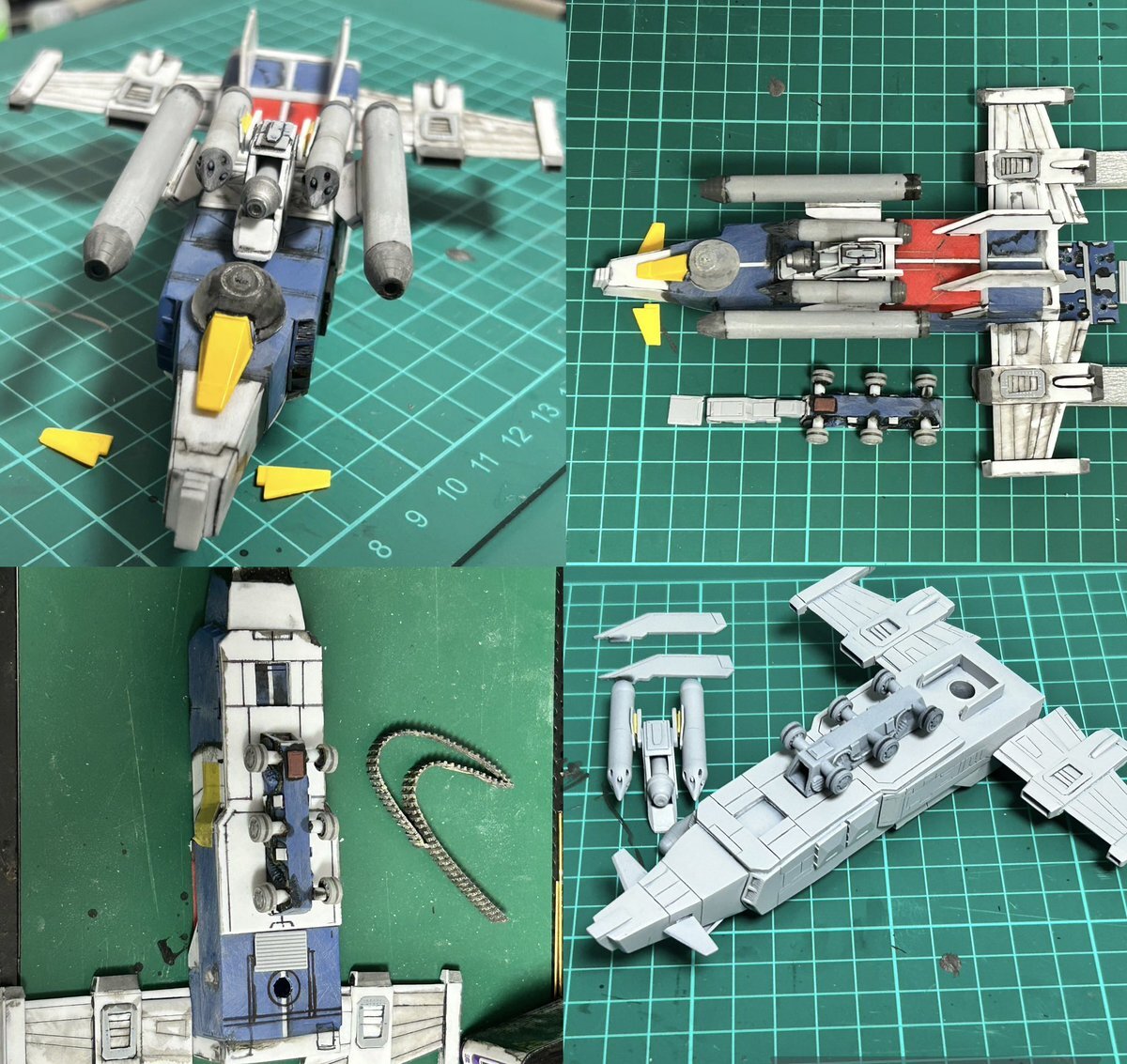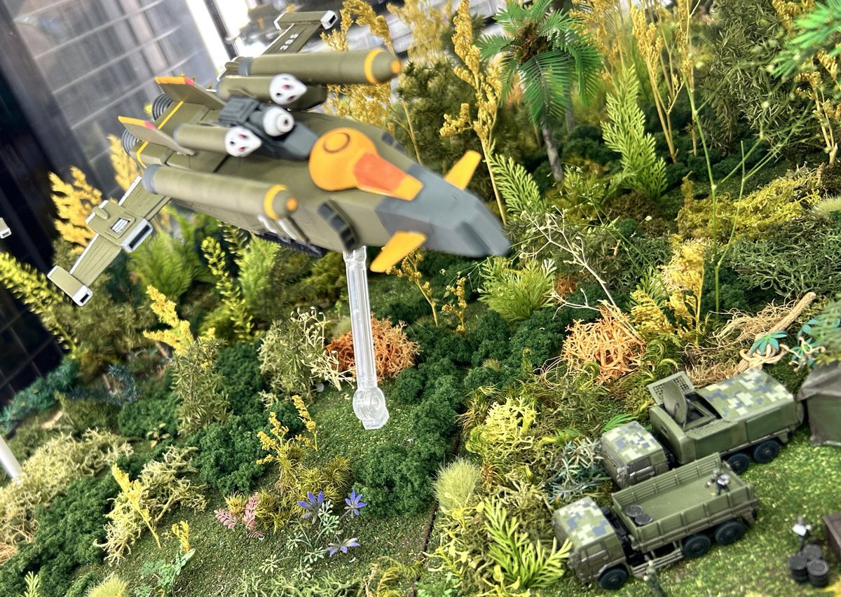 #お前が作った飛行機魅せろ ヨドバシさいたま新都心店様SGRさんのジャブロー上空を拙作が飛行させて頂いております。Gファイター強襲揚陸型。ここまでセミスクラッチ、オール筆塗り仕上げしたのは初めての体験。色々粗が多いですが、制作期間中凄く楽しかったGファイターです! pic.x.com/tt0HDyHWUa