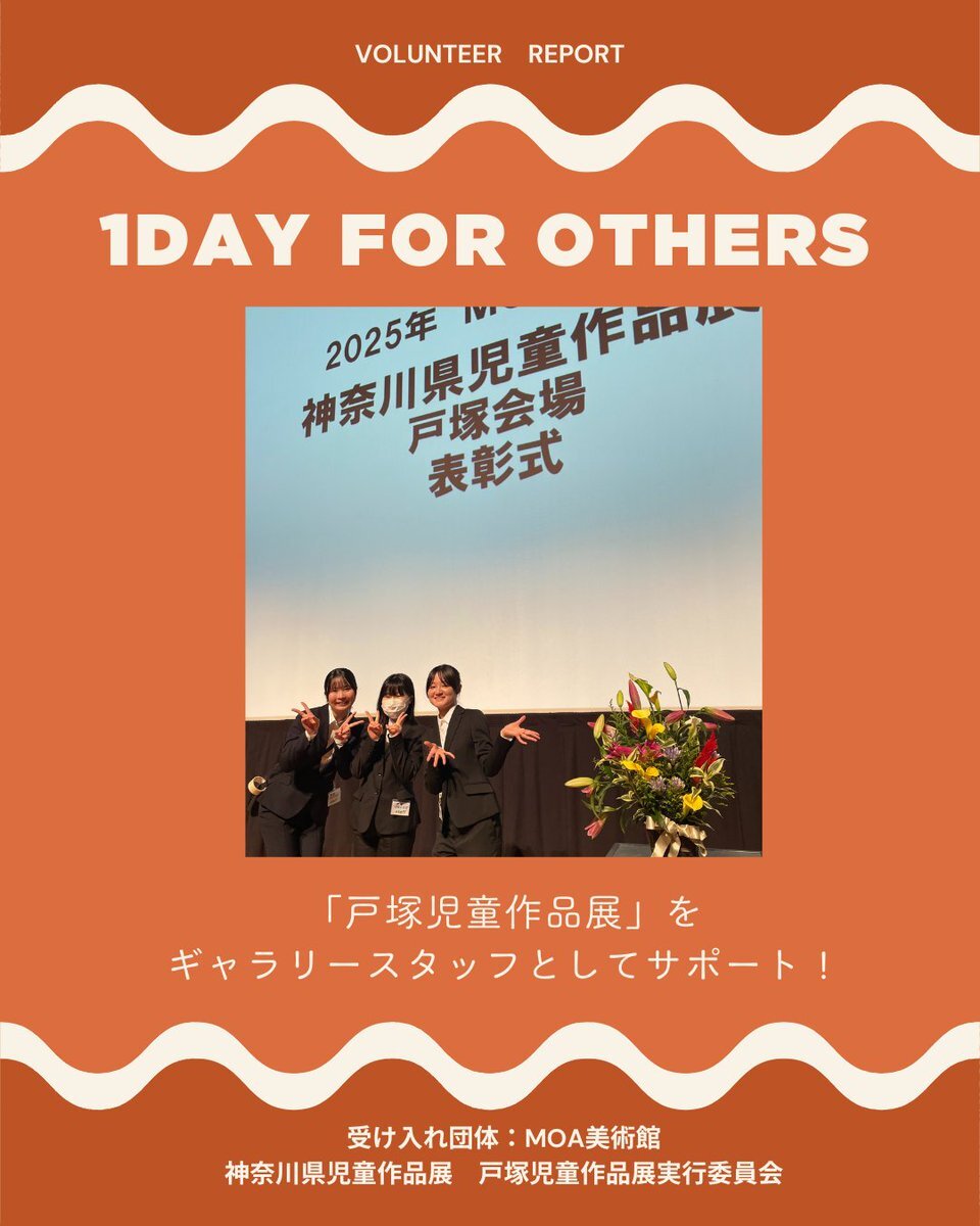 【1Day for Others 活動報告 10/26(日)実施】 受け入れ先:MOA美術館児童作品展実行委員会 参加学生のコメント💬去年に比べ、生徒児童の案内をさせて頂いたことで、より現場を知ることが出来た。手伝うことはないか、スタッフの方に聞いたり、メンバー全員が疑問に思ったことはすぐ行動に移せた。 pic.x.com/7HqNGw9QyI