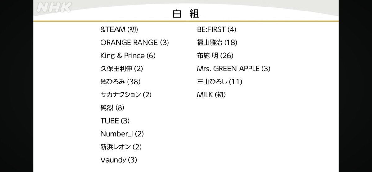 zmedia.jp/entertainment/… 『第76回NHK紅白歌合戦出演者発表。初出場にFRUITS ZIPPER、HANA、M!LKら10組 … BE:FIRST(4)福山雅治(18)布施 明(26)Mrs. GREEN APPLE(3)三山ひろ … #MrsGREENAPPLE