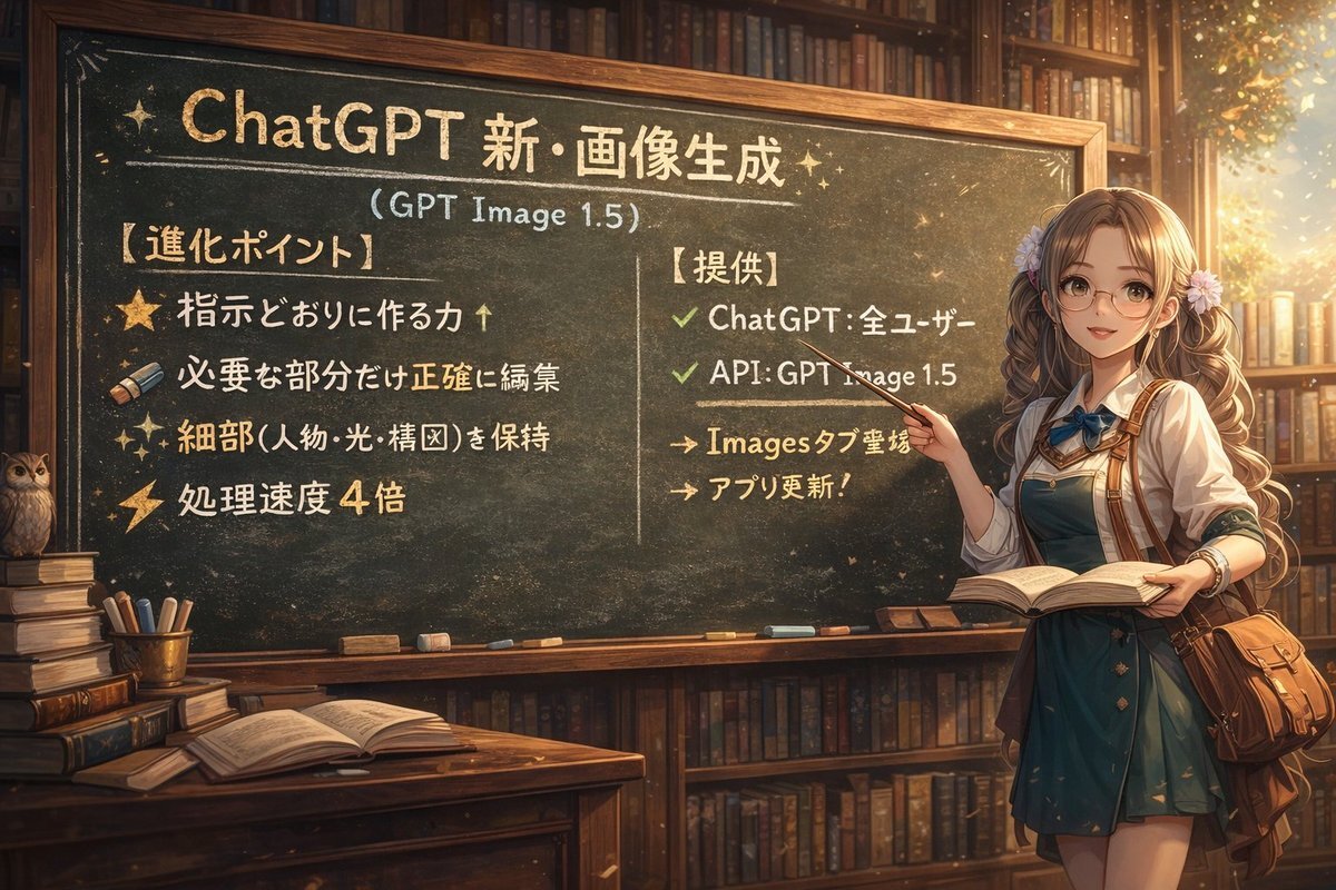 【速報】OpenAIがGPT Image 1.5を公開 以下の画像はGPT Image 1.5で作成しました。人物やキャラクター追従性は非常に高精度で、かなり綺麗な画像が出る一方で、まだ日本語の描画性能はNano Banana Proが良いイメージです。処理速度が4倍になったことも見逃せません。API/ChatGPTから使えます。