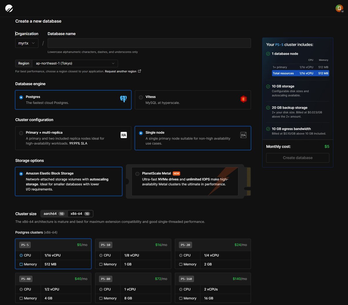 PlanetScale (Postgres) に5ドルプランが登場 個人開発者にとって待望では...! pic.x.com/XowAPwRGb9 x.com/PlanetScale/st…