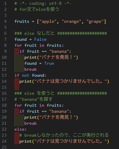 pythonではfor文にelseが使えるよ このelseは、forループがbreakで中断されずに、 最後まで回りきった時だけ実行される処理を書けるんだ。 リスト検索で「見つからなかった」時の処理が、 もうフラグ変数を使わずに書ける! #python pic.x.com/pkPKEyI10X