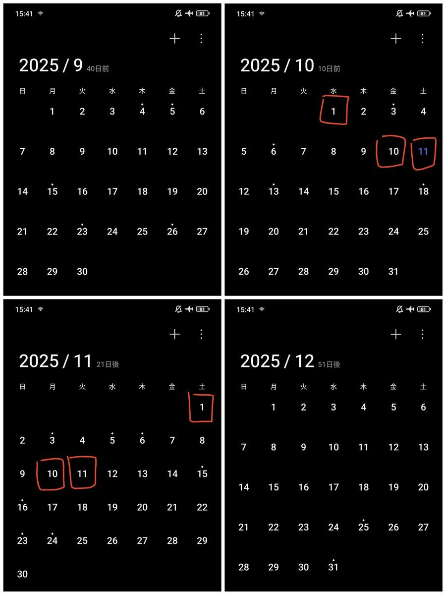 昨日(10/10)、クラスの男子が「今日眼鏡の日だよ」「いやTOTOの日だろ」みたいな話をしてたの でふと、「今日は2進数の日でもあるけど、1年の中で2進数の日って何日あるんだろう?」と思ったわけ 数えてみたところ 1/1 1/10 1/11 10/1 10/10 10/11 11/1 11/10 11/11 この9日でした!意外と少ない? pic.x.com/KrIMqLisJp