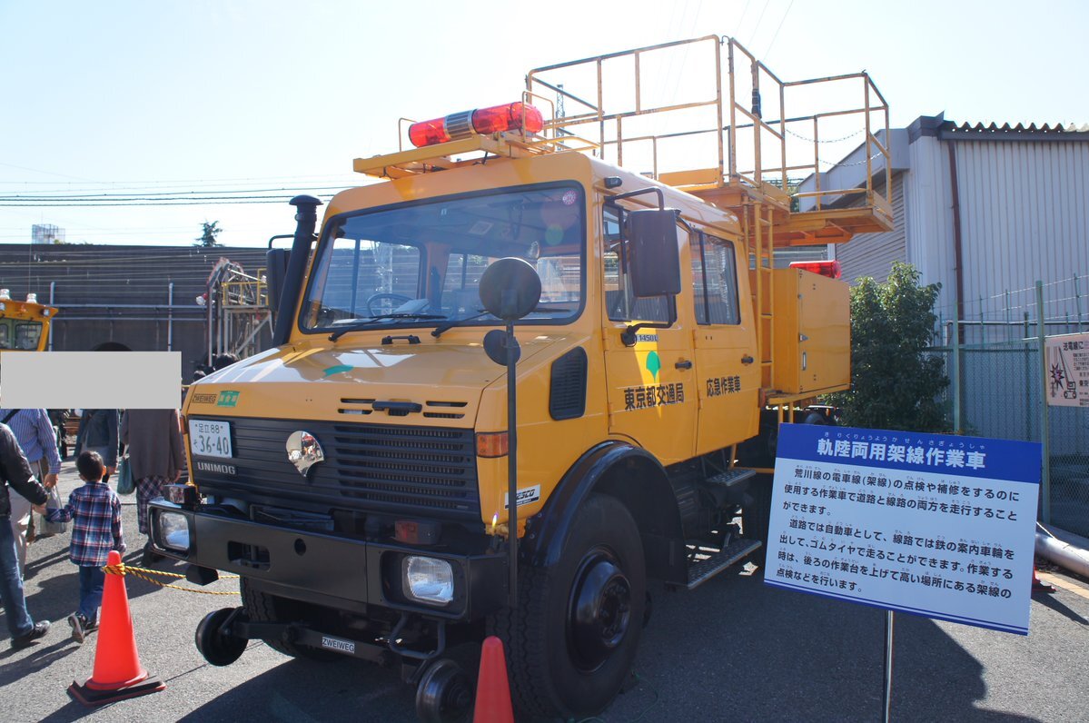 2012年11月 東京都交通局志村車両検修場 「東京都交通局 都営フェスタ2012 in 三田線」 軌陸両用架線作業車(応急作業車) 都電荒川線の架線点検作業用 前面グリルに本来ついているメルセデスのマーク「スリーポインテッド・スター」が、東京都のイチョウに変えられているのがポイント高い #保守用車 pic.x.com/THMY7JJe0M