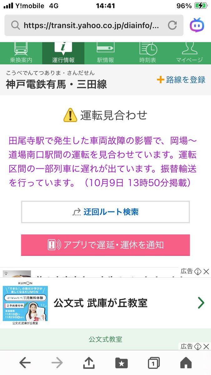 【神鉄三田線 上下線 運転見合わせ】 三田線は、田尾寺駅での車両故障の影響で、岡場〜道場南口の上下線で運転を見合わせています。運転区間の一部列車に遅れがでています。 ★振替輸送利用可能★ pic.x.com/PDKEdLGiko