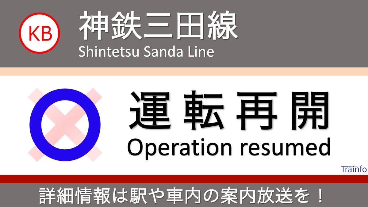 【神鉄三田線 上下線 運転再開】 三田線は、田尾寺駅での車両故障の影響で、岡場〜道場南口の上下線で運転を見合わせていましたが、順次運転を再開しました。[Update 15:50] pic.x.com/3ist5eRQZG
