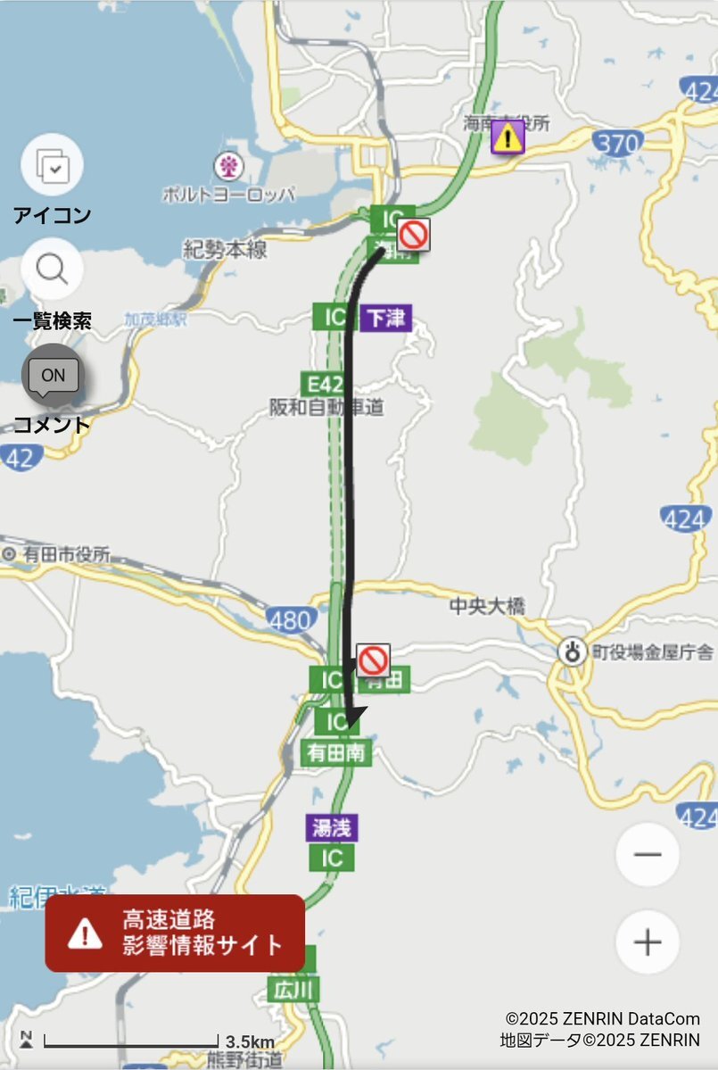 【通行止:解除】 路線区間:E︎42︎阪和道(下り線)海南IC~有田IC 開始:6時00分 要因:工事 最新の交通状況▼atis.co.jp/traffic/highwa… #阪和道 ︎#通行止 x.com/highwayinfo0/s…