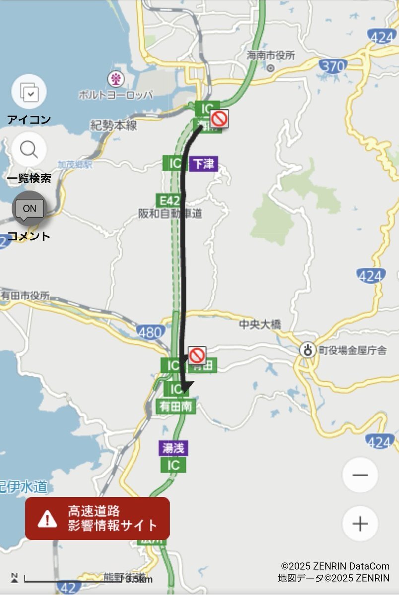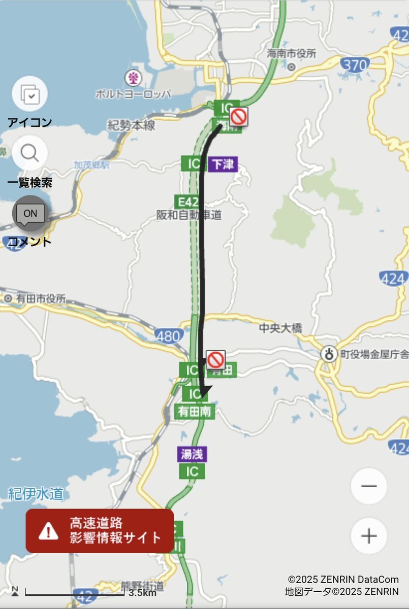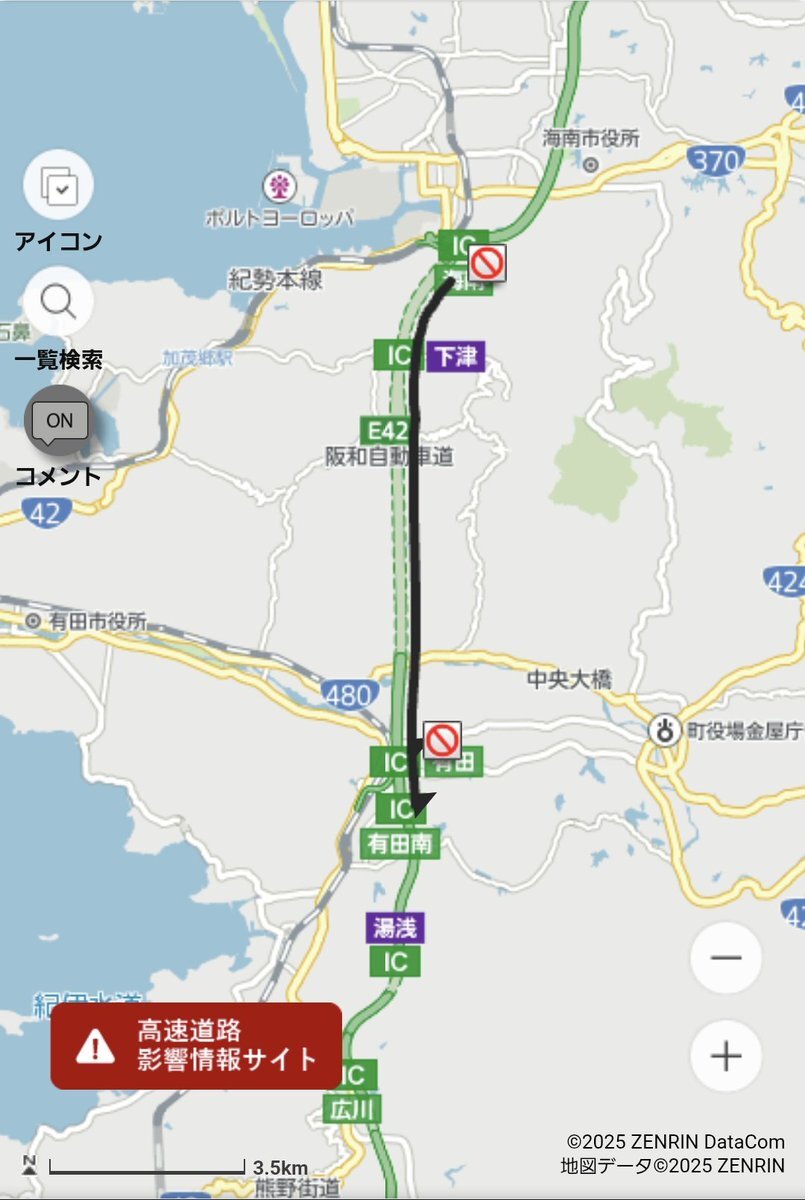 【通行止:解除】 路線区間:E︎42︎阪和道(下り線)海南IC~有田IC 解除:6時00分 要因:工事 最新の交通状況▼atis.co.jp/traffic/highwa… #阪和道 ︎#通行止 x.com/highwayinfo0/s…